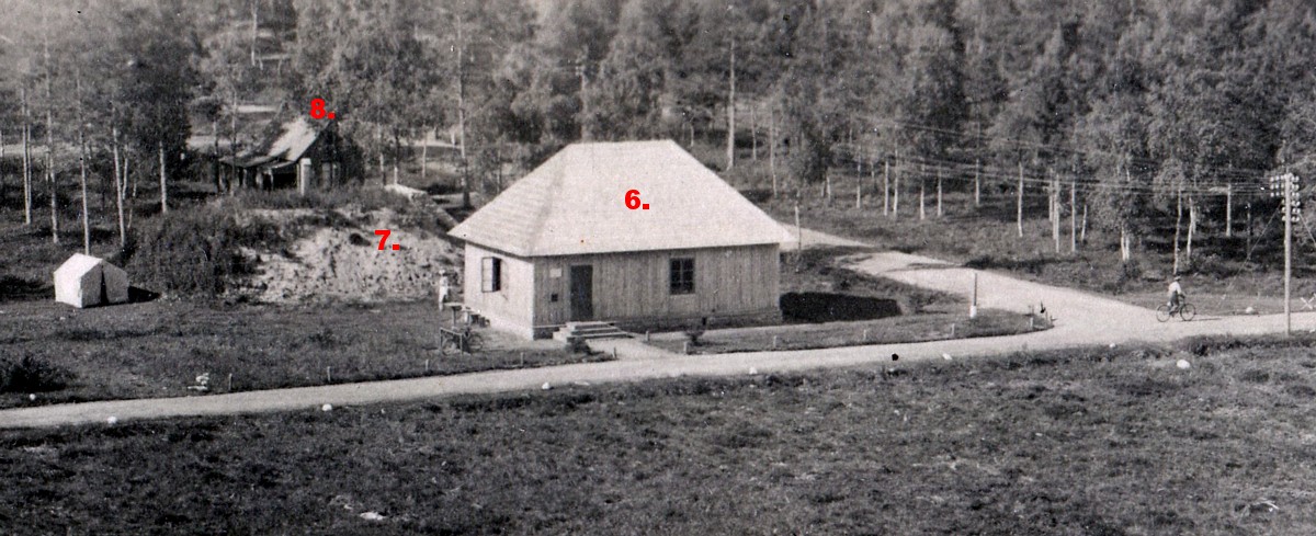 8. Sõdurite pood - ühekordne ehitus, paekividest aluspostidel väljastpoolt laudadega vooderdatud sõrestik seintega, puust põrandaga, laeta, papp katusega. - 56 m3.