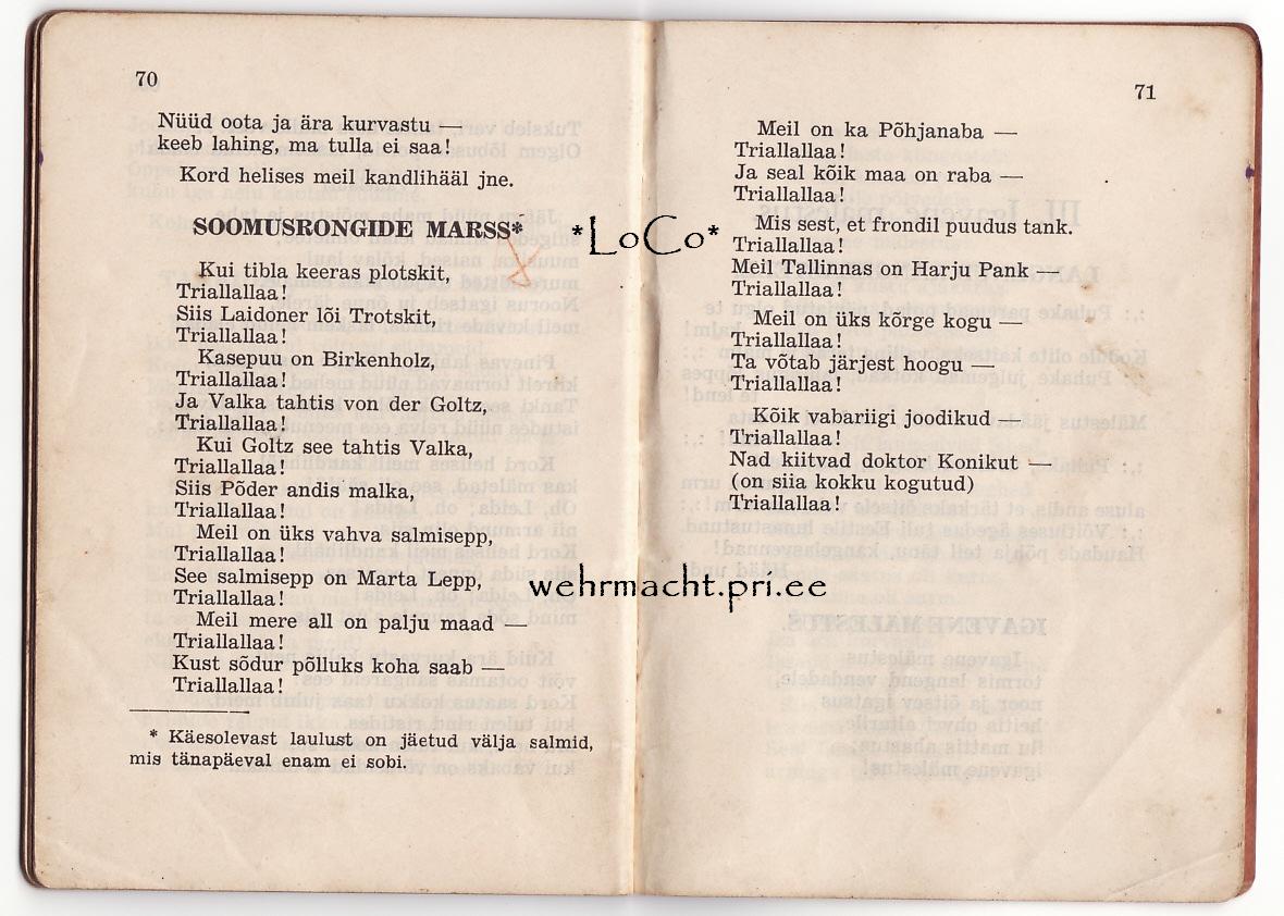 Sees on ka kirjas, et "Võimalik puhastulu sellest väljaandest läheb K.L. Nõmme Malevkonna kodu soetamise fondi" Üks tore laul ka