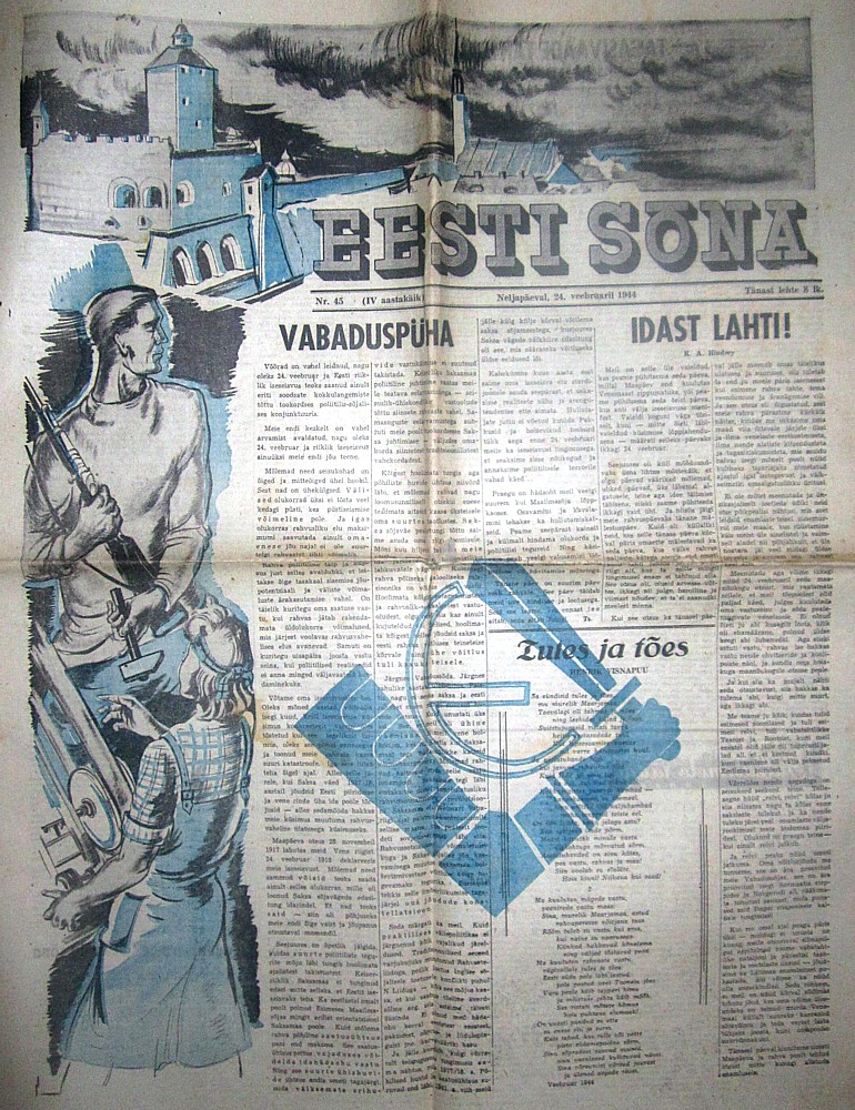 Kandilist käsi-mõõga motiivi kohtab esmakordselt "EESTI SÕNA" 1944. aasta 24. veebruari numbri esikaanel!