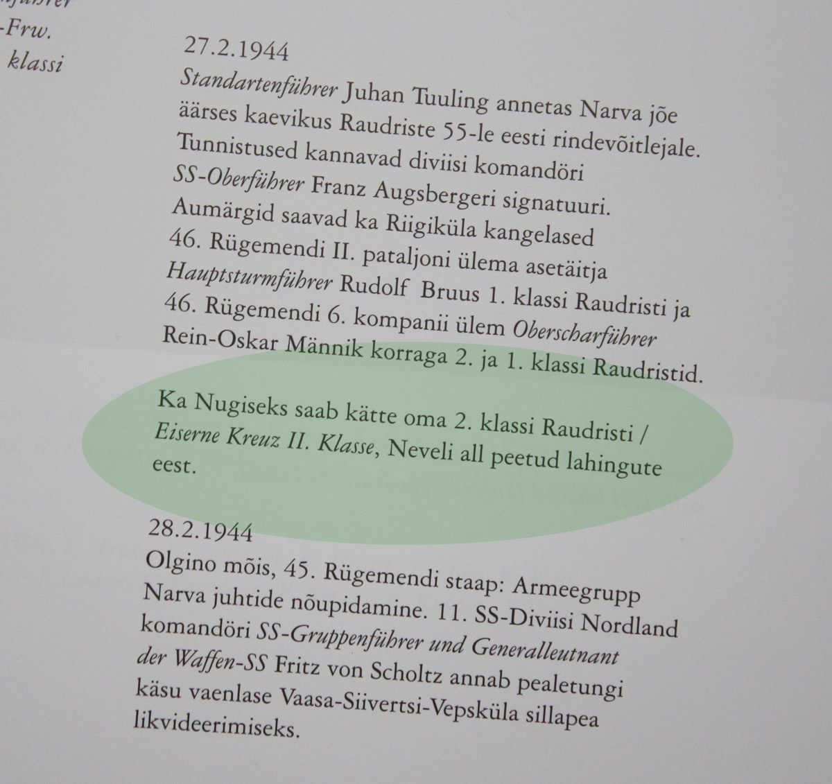 Nugiseks sai oma EK2 Neveli lahingute eest, pildistus raamatust H. Prunsvelt "Nugiseks".nrw44 kirjutas:See nimekiri siiski ainult Riigi sillapea likvideerimisega ilmselt seotud pole. Näiteks Harald Nugiseks ju otseselt sellest osa ei võtnud (?)