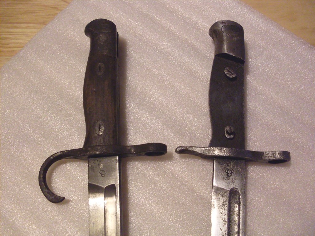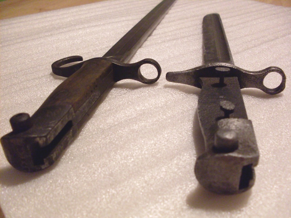 Panin aga tähele ühe fakti: NÕMM märgib ära, et kütipüssidele tehti raskem raud, mille (ilmselt väline) läbimõõt suudmest mõõtes olnud 17mm. Lihtne loogika ütleb, et ka uue nugatäägi käekaitse suudmering pidi olema vähemalt 17mm siseringi läbimõõdust mõõtes. Arisaka standardtäägil on see kõigest 14mm. Jälle lihtne loogika - uuel nugatäägil pidi peale tera ja tupe lühendamise ka käekaitse asendama uuega, millel oluliselt suurem suudmering.
