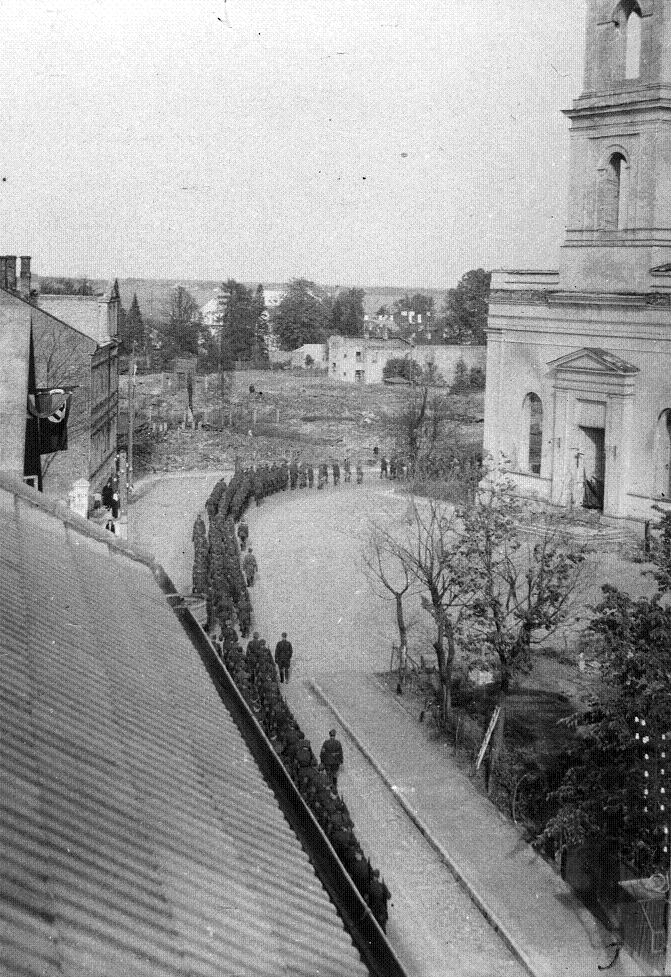 üks eelne pilt kadivine kirjutas:"Eesti pataljon marsib rivis Pepleri ja Kuperjanovi t nurgal. Paremal Maarja kirik. Tartu, 24.06.1942. Foto Ilja Pähn."