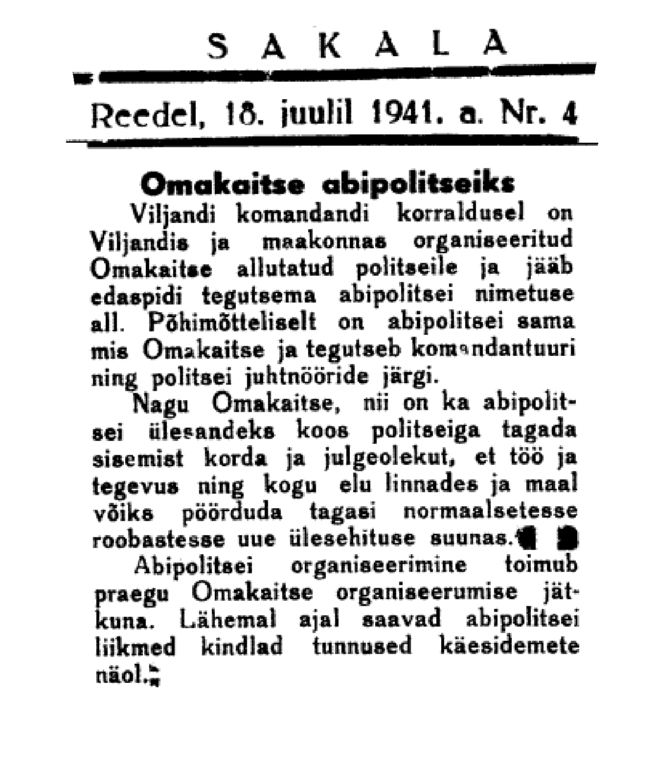Selline Hilfspolizei - Abipolitsei käiselint peaks jääma 1941. aasta augustisse / septembrisse ja nendest lindikandjatest (või õigemini osaliselt nendest lindikandjatest) hakati 1941. aasta sügisel formeerima Eesti politseipataljone.