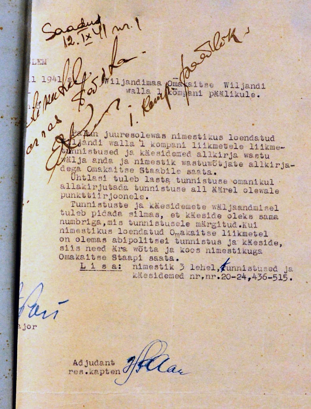Valgas käisid asjad nii kiiresti, et 1941. aasta 17. juuli ajalehes "Valga Teataja" kirjutatakse, et selleks ajaks juba vanad käelindid tuli OK staapi tagasi tuua.