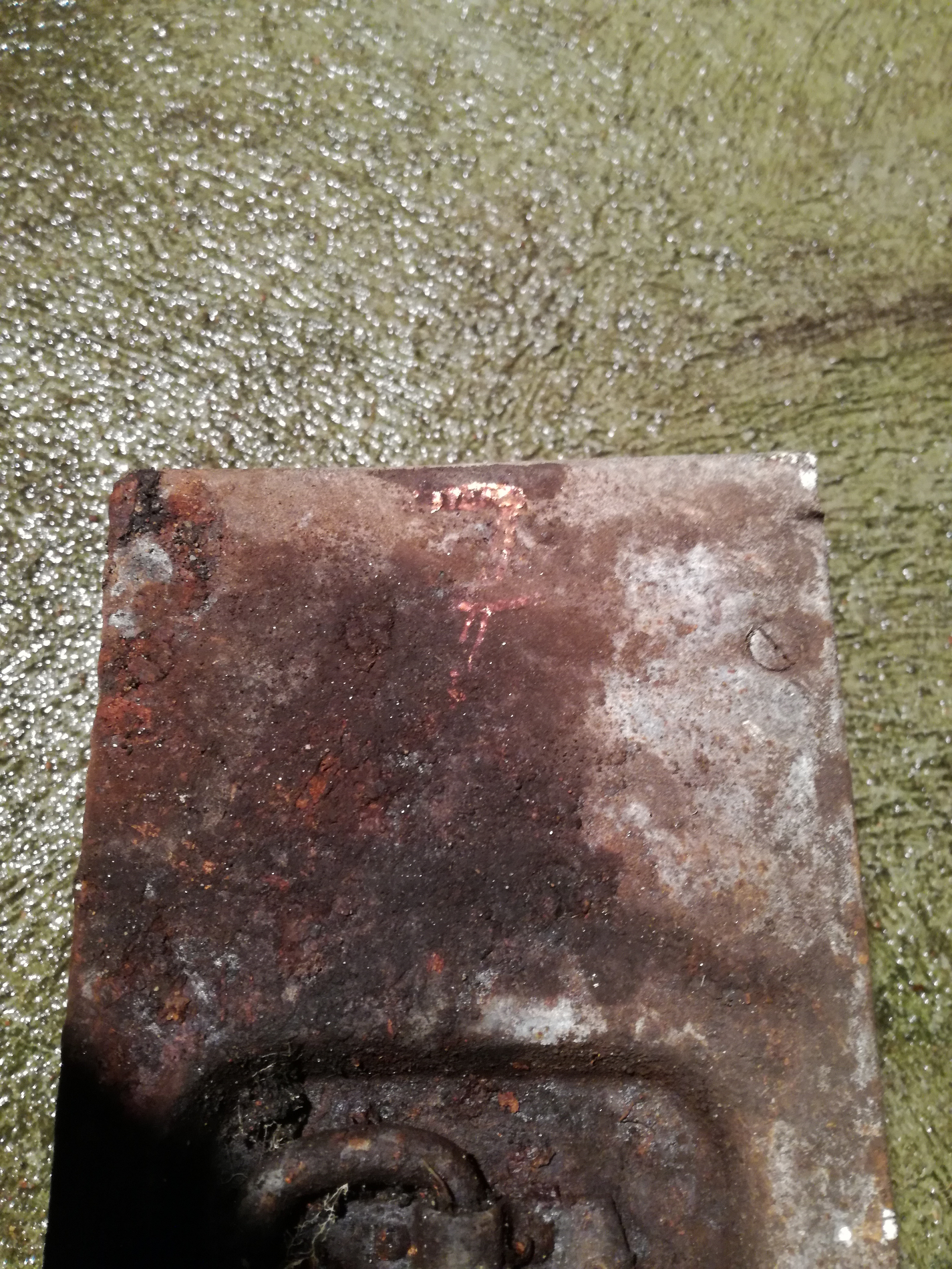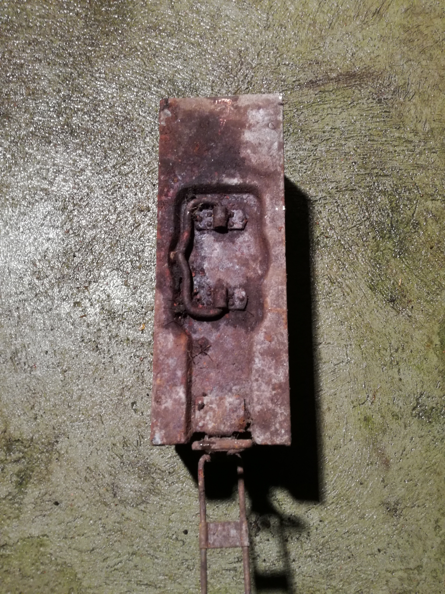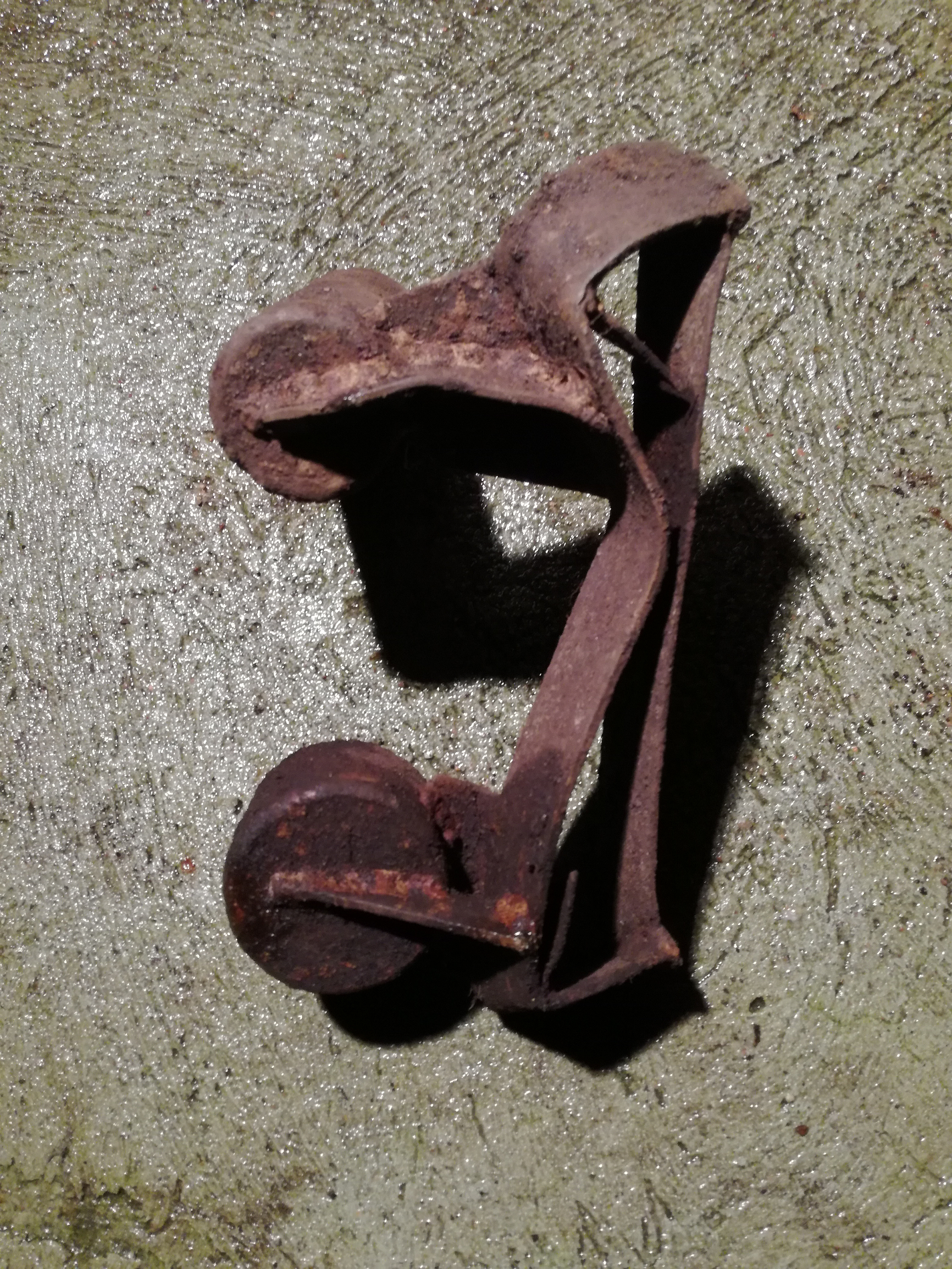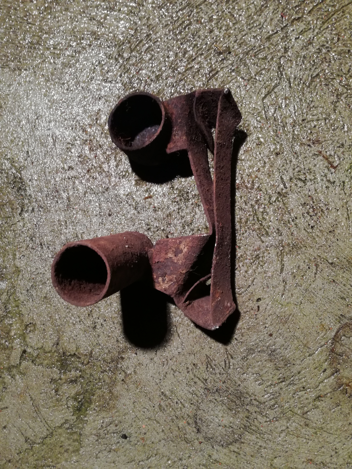 Tükk mida pidasin miinipilduja küljest pärinevaks on hoopis pilduja vedamiseks tarvitatava käru küljest ning hoidis paigal labidat ning kahte nühitsavart.