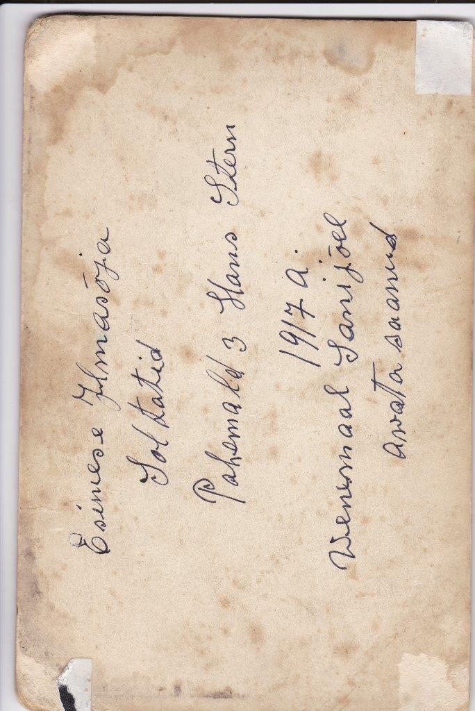 Vanaisa suri 1971, mil olin laps ja kodus meil üldse tema sõjaskäimisest ei räägitud. Need fotod sain oma tädilt, kes oli üksik inimene ja keda hooldasin tema surmani. Mu isa - vanaisa teine laps - on ammu surnud ja temagi ei rääkinud oma isast eriti. Olin küll palju vanaema-vanaisa juures Viljandis, Lina t kuid vanaisa oli väga omaette hoidev ja sõnakehv. Mäletan teda ainult oma väga suures aias ja "tumaadimajas" (tema väljend kasvuhoone kohta) toimetamas.