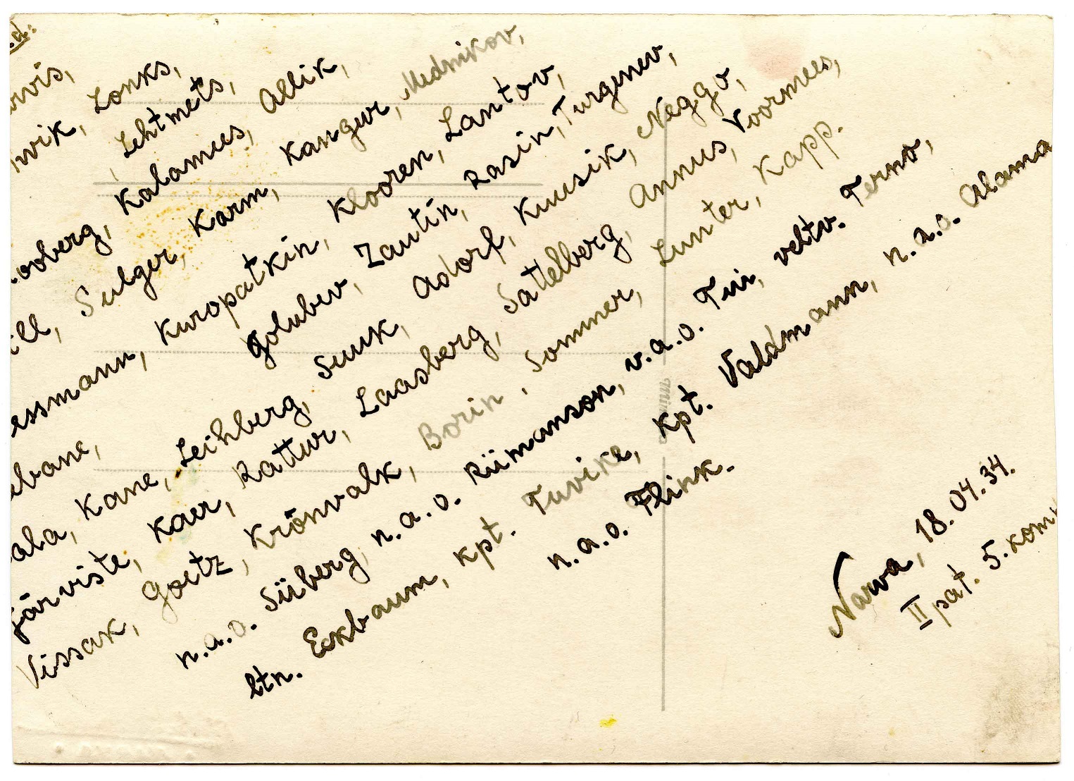 1. Jalaväerügement, II pataljon, 5 kompanii, Narva, 18.04.34