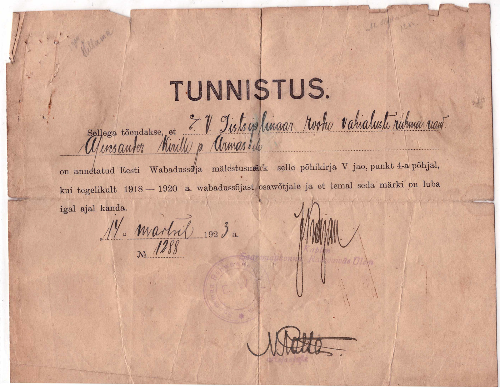 Kui Armas oli Saaremaa mees, siis peale Saaremaa mässu läks neid ikka päris palju distsiplinaarpataljoni (või ka lihtsalt laagrisse). Suur osa neist omakorda jõudis Soomusrongide dessanti, kus teenisid asjalikult ning kõrvuti vabatahtlikega ning mingit "surma"-värki ei kujunenud.