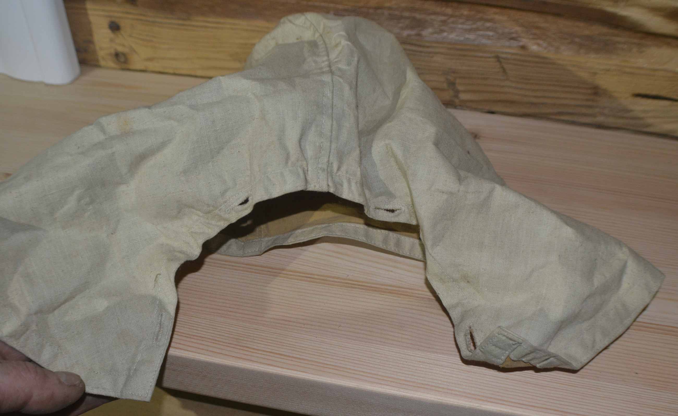 Saksa leivakotist tuli välja selline kapuuts seest kummeeritud väljast valge.Kas mõne talvise jaki küljest.