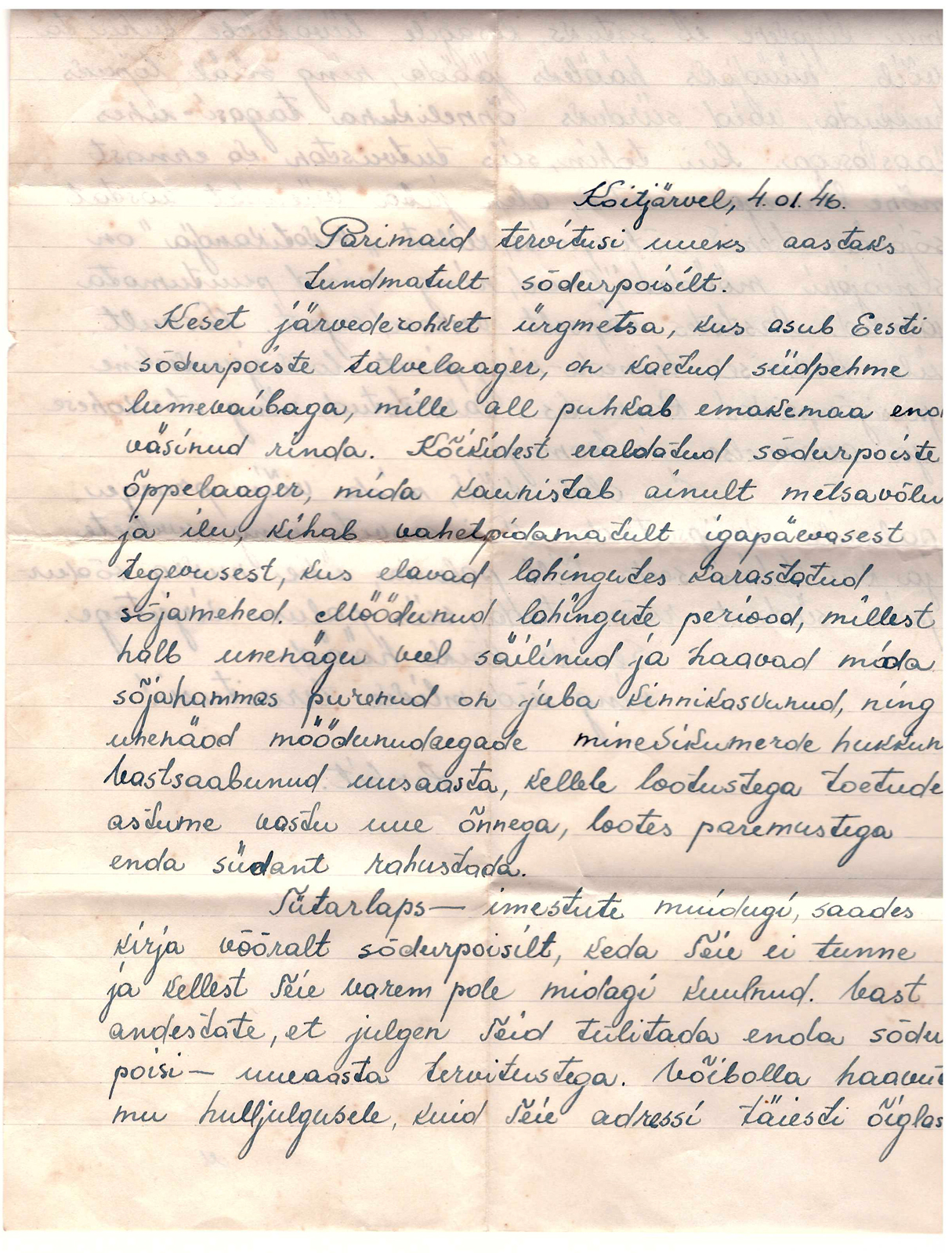 Sain oma valdusesse mõned kirjad ja tekkis paar küsimust.Nimelt keegi sõdurpoiss Lembit üritab kangesti ühe saarepiigaga kirjavahetust sättida.Ja kirjad on daatumiga jaanuar-märts 1946 Koitjärvel.Poiss kirjutab,et on talvelaagris ja teevad õppuseid.Et juba viies aasta läheb mundrit kandes ja ise on 25 aastat vana.Kas võib tegu olla Rootsis Göteborgi lähedal oleva eestlaste poolt soetatud maatükiga,mis sai sellise nime ja kus siis skaudid oma laagreid pidasid? Või nimetati kõik laagripaigad Koitjärveks.