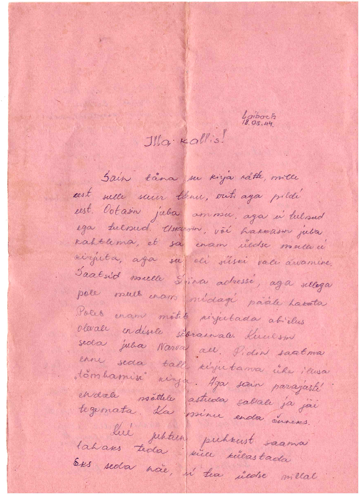 Samale piigale on ka teine (ja kes teab kui mitu veel), kirjutanud.Aga juba18.08. 1944 ja sellisest paigast nagu Laibach ,ehk Ljubljana.Kirjas ka pilt ja nimekaart. Erik Ratassepp Simunast.Ja Alpidest on 01.07.1944 pilt postitatud.