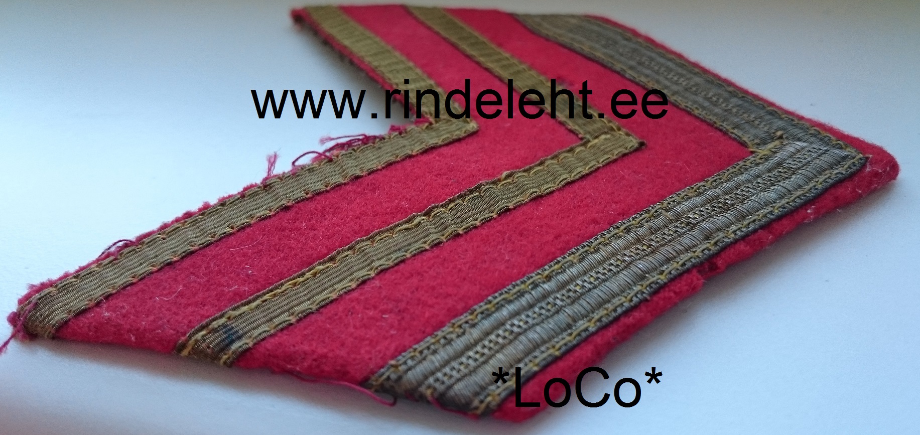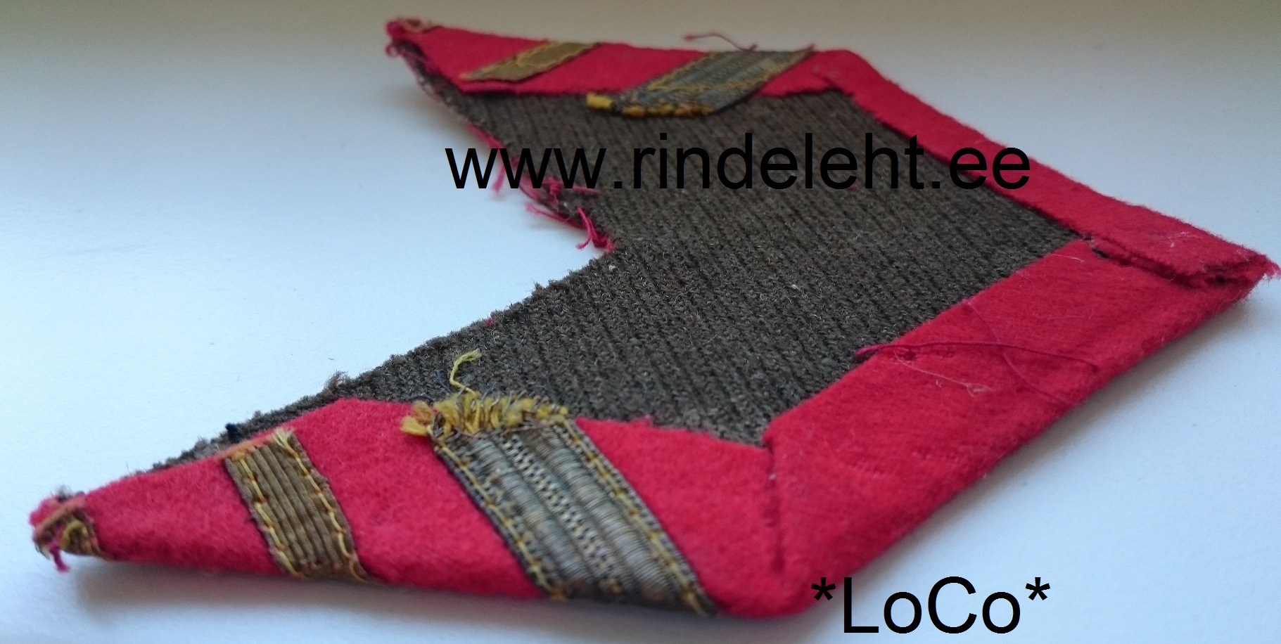 Siin on tema vormitunnused. Selgelt on näha, et kohalik töö. Tundub, et on kasutatud EW auastmetunnuste linte ja ka EW khaki värvi kangast.