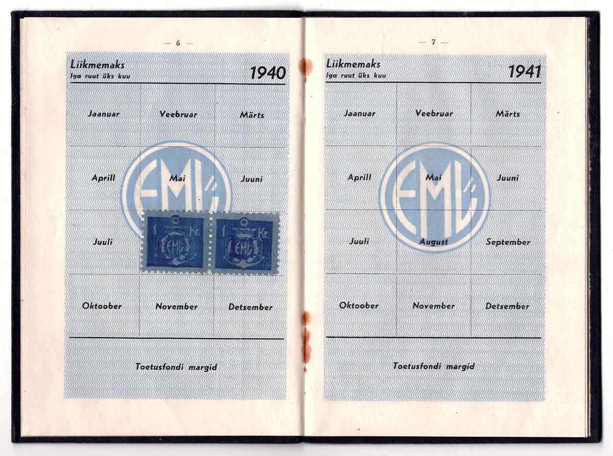 1940 aastal välja antud liikmepilet
