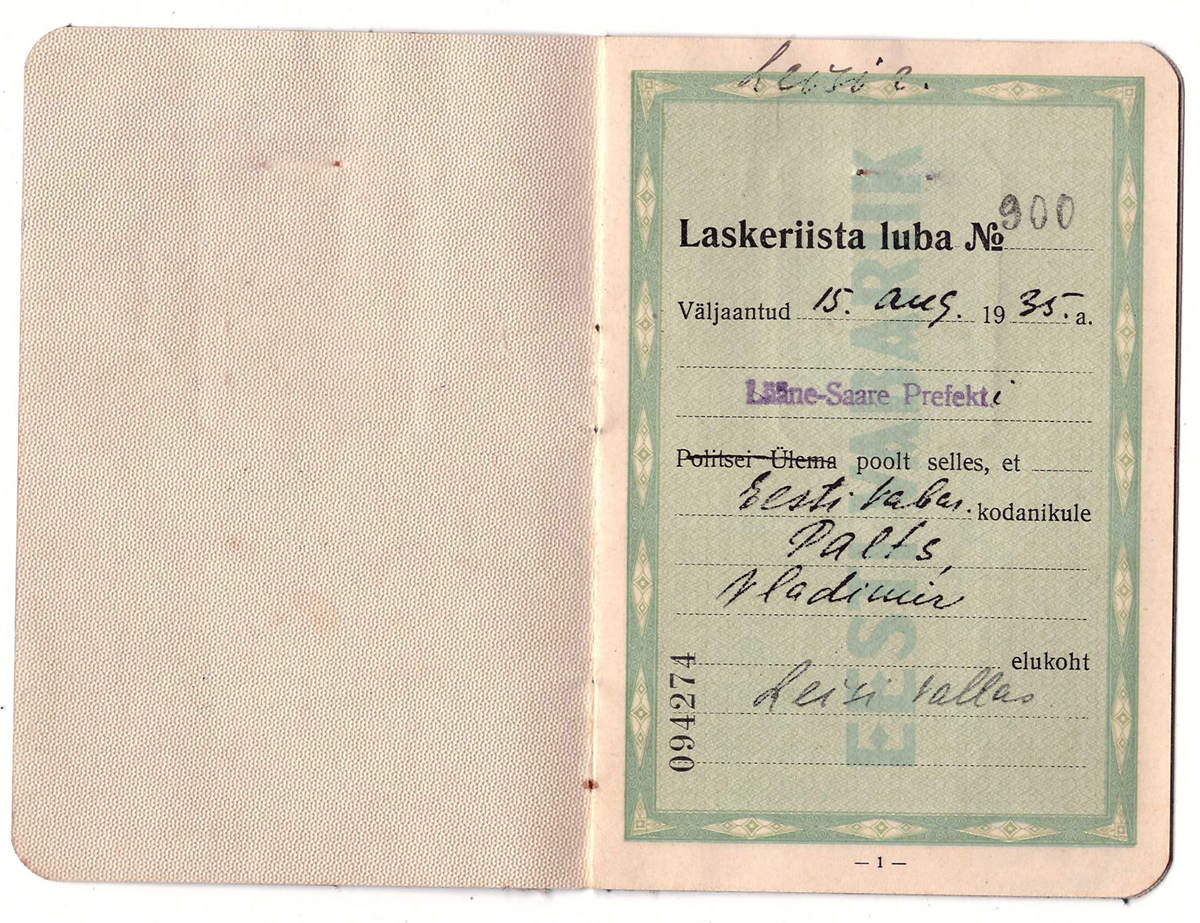 Pärnumaa,Kaisma vallavanema Hans Andressoni relvaluba aastast 1916.