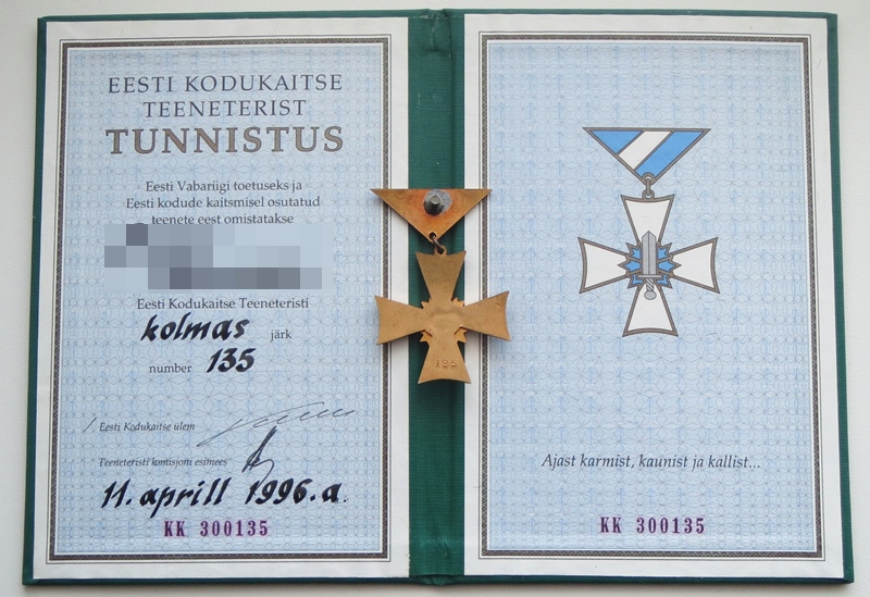 Täitsa sümpaatse teostusega rist. Kas see dokumendi number 300135 tähendab seda, et dokumente on trükitud 300 ja viimased kolm numbrit peavad kokku sattuma autasu numbriga? Palju neid riste üldse on välja antud, teab keegi?