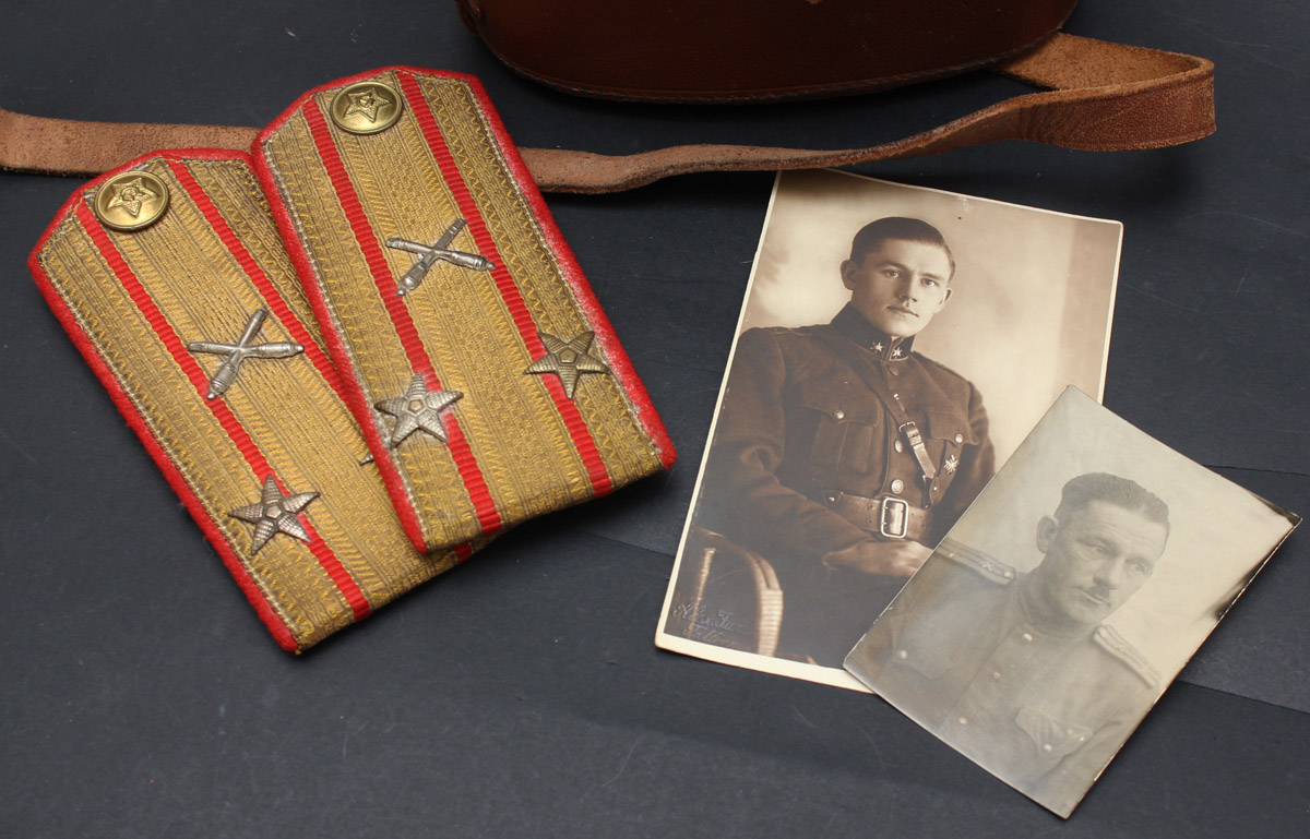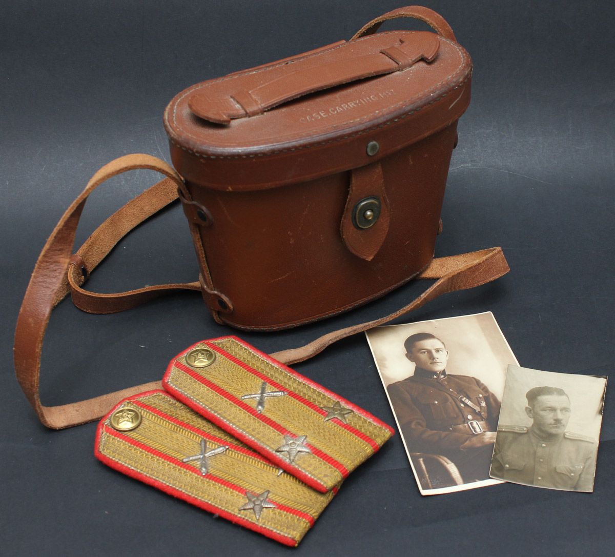Eesti Kaitseväe kaptenile / Punaarmee alampolkovnikule Eerik Looritsale kuulunud pagunid ja lend-lease abina saadud binoklivutlar.