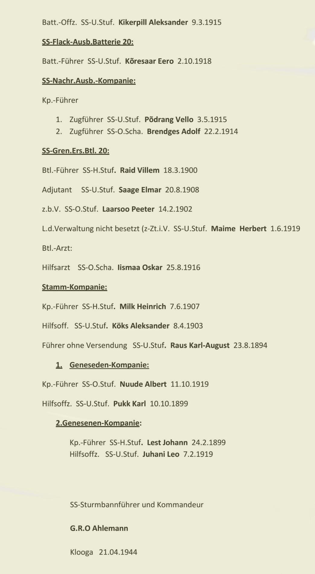 TRUPPENÜBUNGSPLATZ KLOOGA VÄLJAÕPPELAAGER