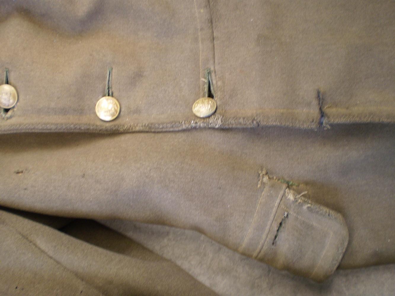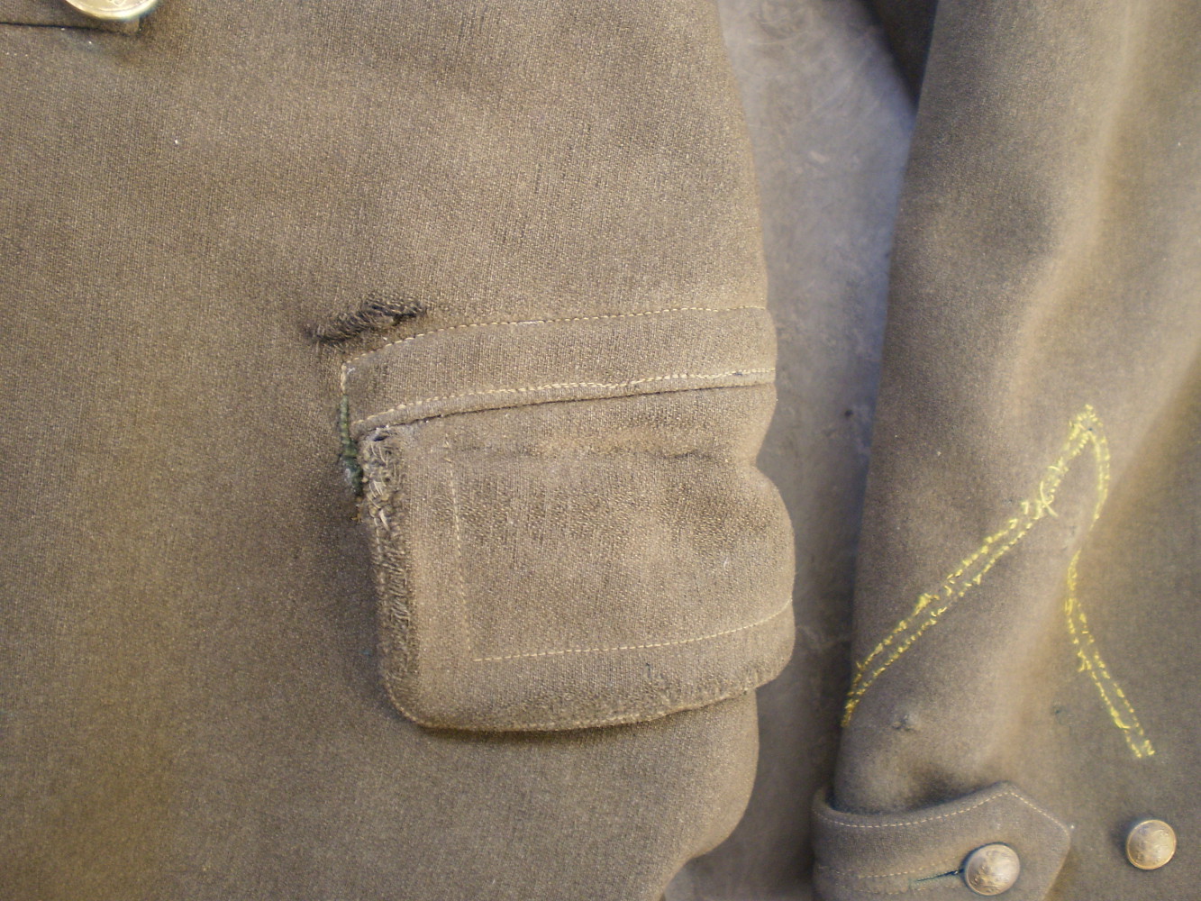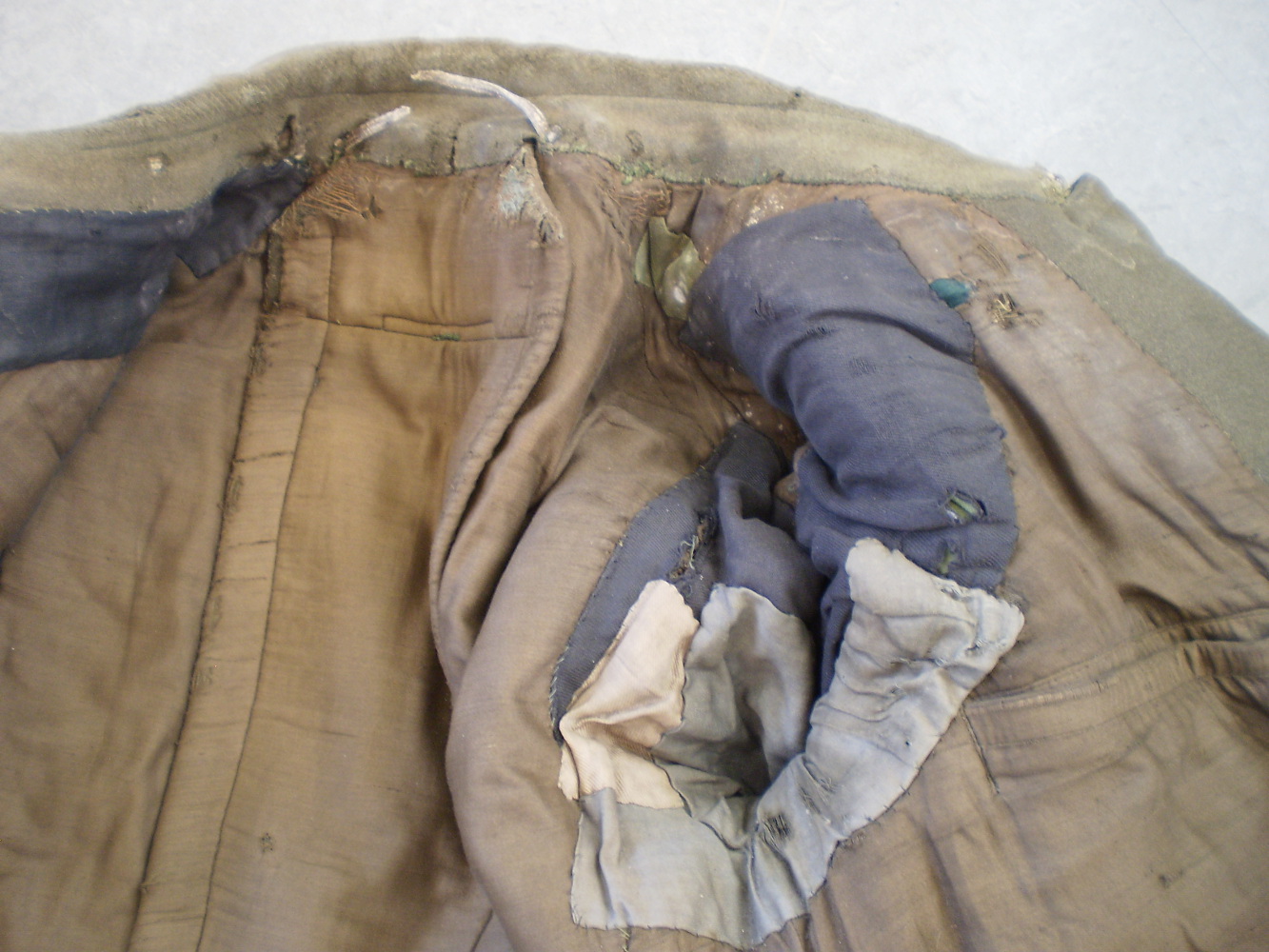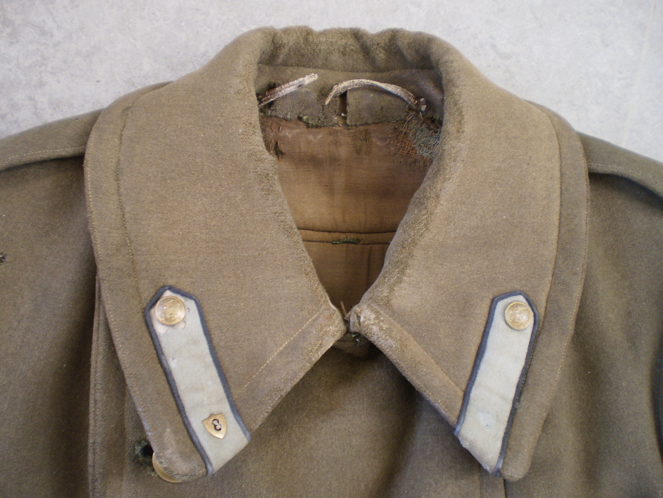 Sineli kraelõkmed ja nööbid on peal originaalis. Nagu näha on saanud juba rahu ajal kõvasti kandmist ja parandamist. Riie oli toona kallis ja asjad peeti läbi. Peale puhastust, paikamist saaks kobeda asja. Pagunil näha jäljed auastmetunnustest enne 1936 aastat. Sinel on päris suur.