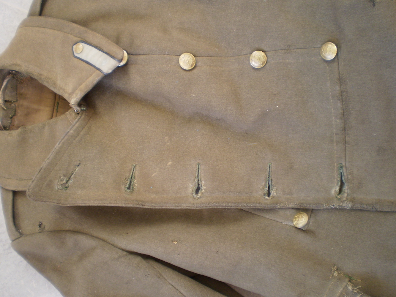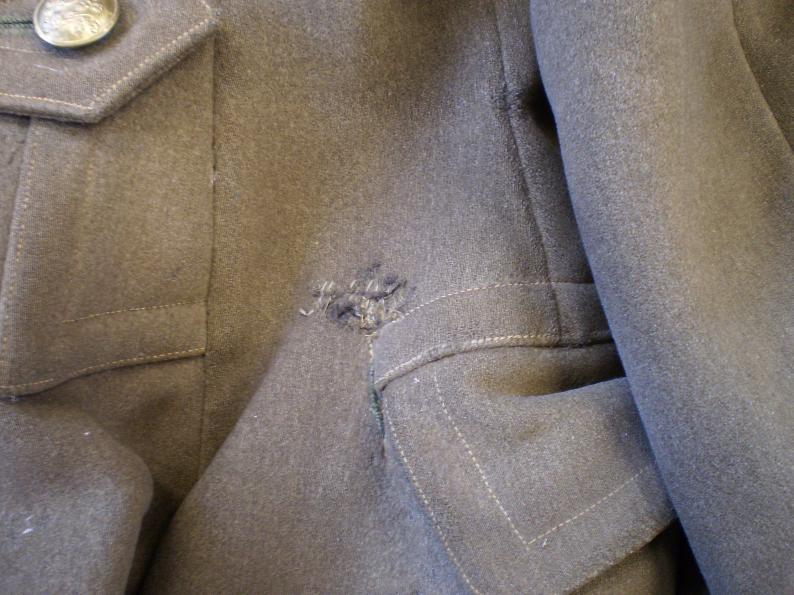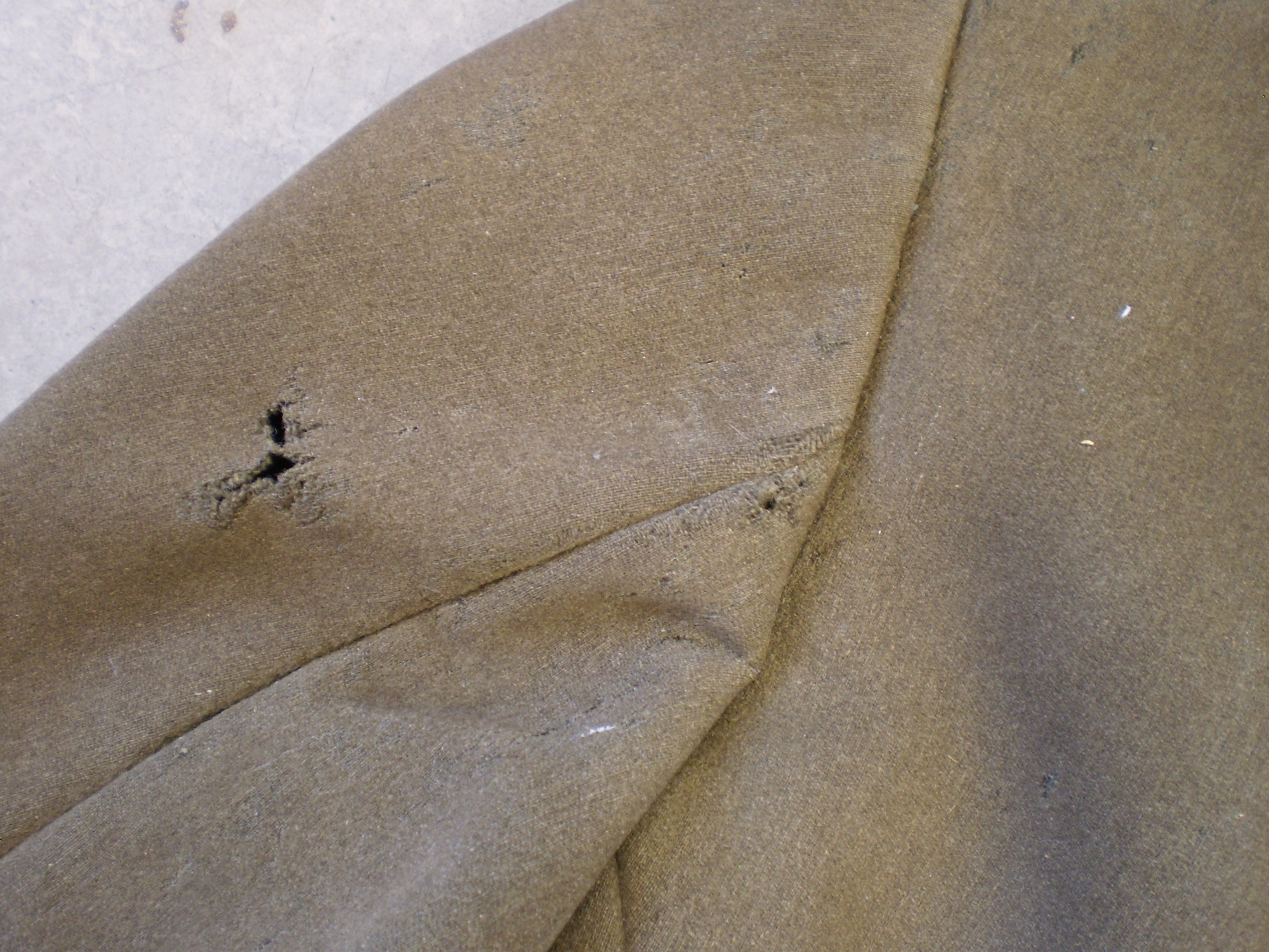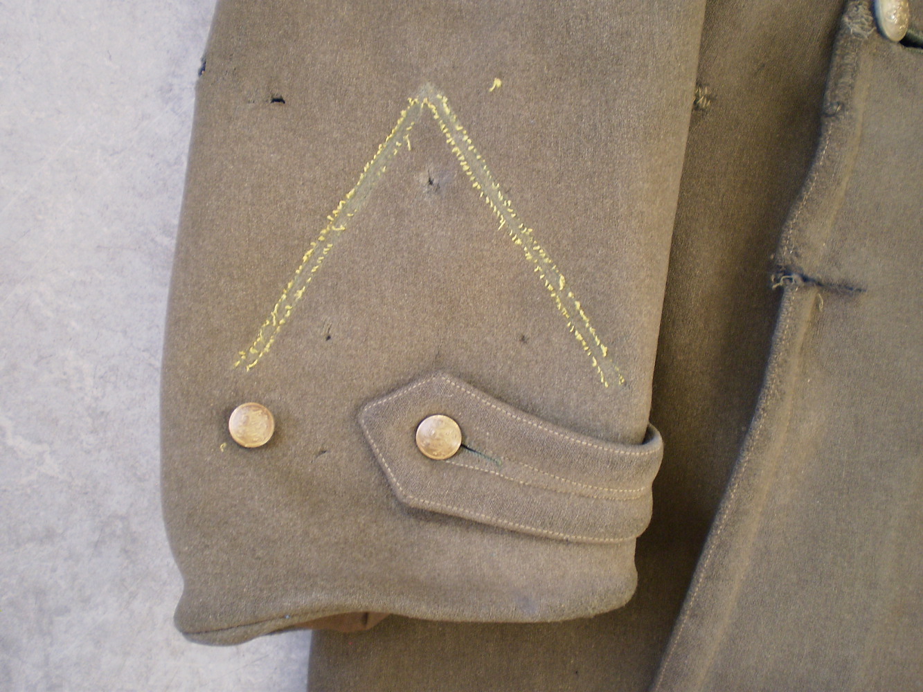 Sineli kraelõkmed ja nööbid on peal originaalis. Nagu näha on saanud juba rahu ajal kõvasti kandmist ja parandamist. Riie oli toona kallis ja asjad peeti läbi. Peale puhastust, paikamist saaks kobeda asja. Pagunil näha jäljed auastmetunnustest enne 1936 aastat. Sinel on päris suur.