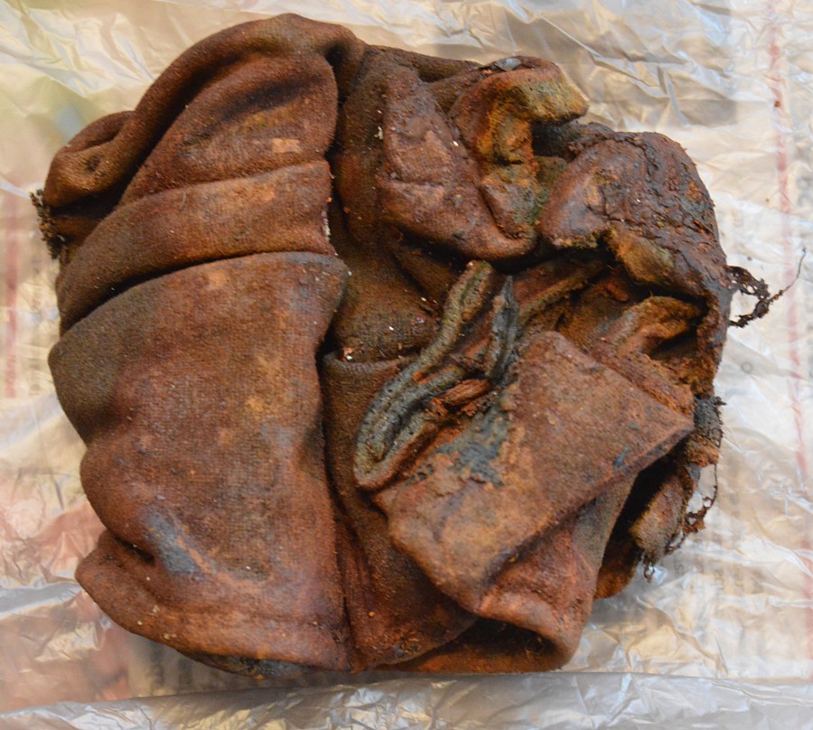 Ühe kaevamise käigus tuli maakoores alt välja mh gaasimaski torbik, mille avamisel selgus, et lisaks tavapärasele sisule ka midagi lisaks. Põgus vaatlus kinnitas, et hoiule oli pandud ka pilotka. Torbik oli osaliselt läbi mädanenud ja kaotanud oma hermeetilisuse aga sisu oli enamvähem ühes tükis. Üks halvakvaliteediline pilt esemest. Ksf ivalo lisab ehk uuemad ülesvõtted objektist pärast mõningast puhastamist.
