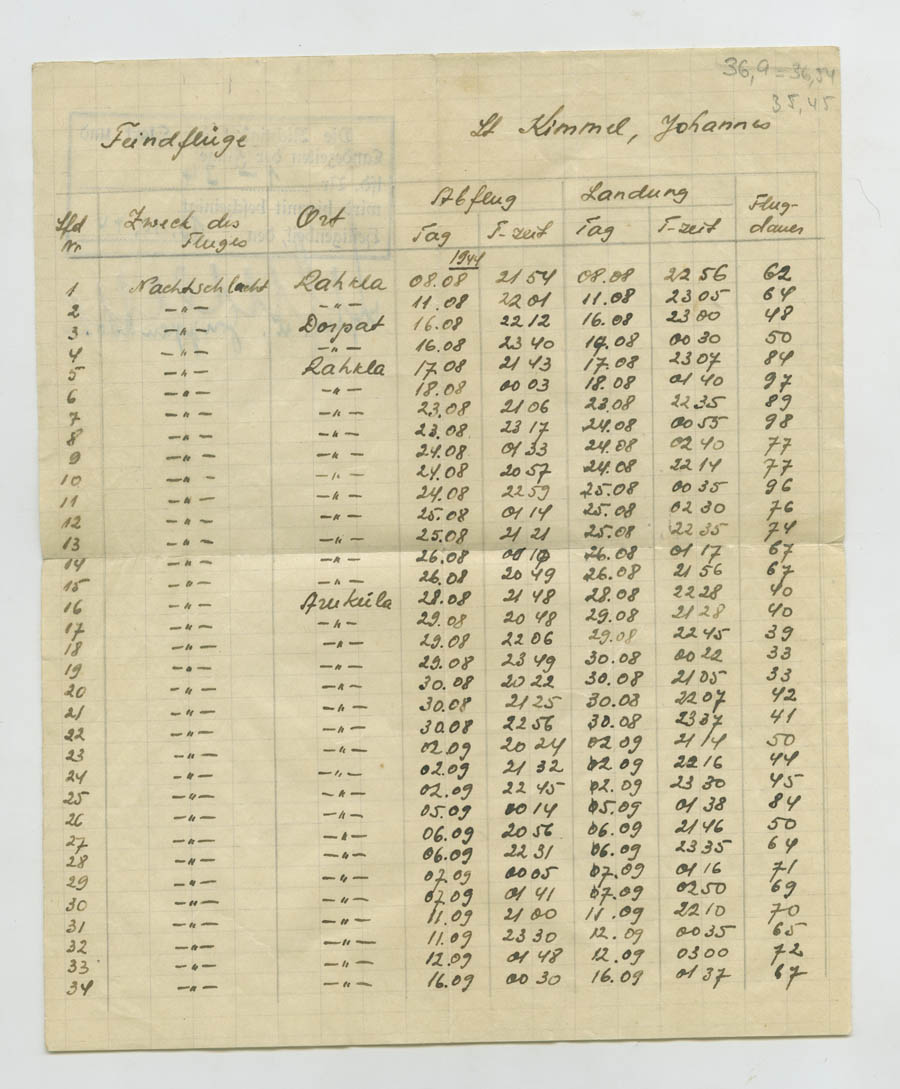 Teemat alustanud ülesvõte on 11. Öölahingulennugrupi 2. salga lenduri, leitnant Johannes Kimmeli komplektist ja tema lendude lehele ilmub 1944. aasta 28. augustist lennuväljana Aruküla. Võrreldes eelnenud Rahkla lennuväljaga on Arukülast tõustes / maandudes lennuajad oluliselt vähenenud, mis tähendab, et Aruküla võiks paikneda Rahkla lennuväljast omajagu kilomeetreid ida poole?