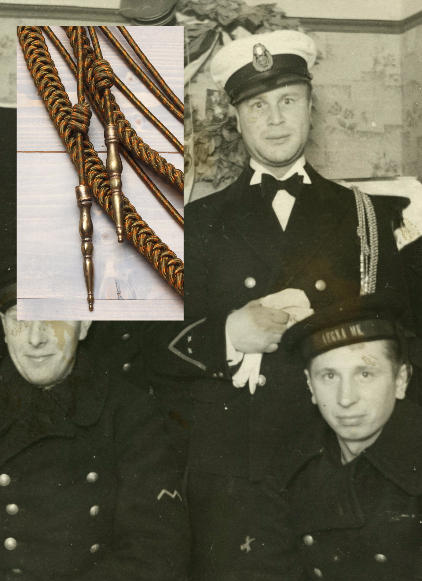 Aastaid tagasi sain sellise akselbandi. Nüüd leidsin ühelt fotolt midagi sarnast, kus 1939. aastal Aegnal tehtud ülesvõttel on allohvitseril sarnane akselbant vasakul õlal. Oskab keegi midagi arvata? Eesti kaitseväes kandsid vasakul õlal orkestrandid aga nende oma oli oranž ja mustade triibukestega. Kas see Aegna allohvitser on mõni mereväe moosekant ja neil oli teist värvi akselbant kui maaväes?