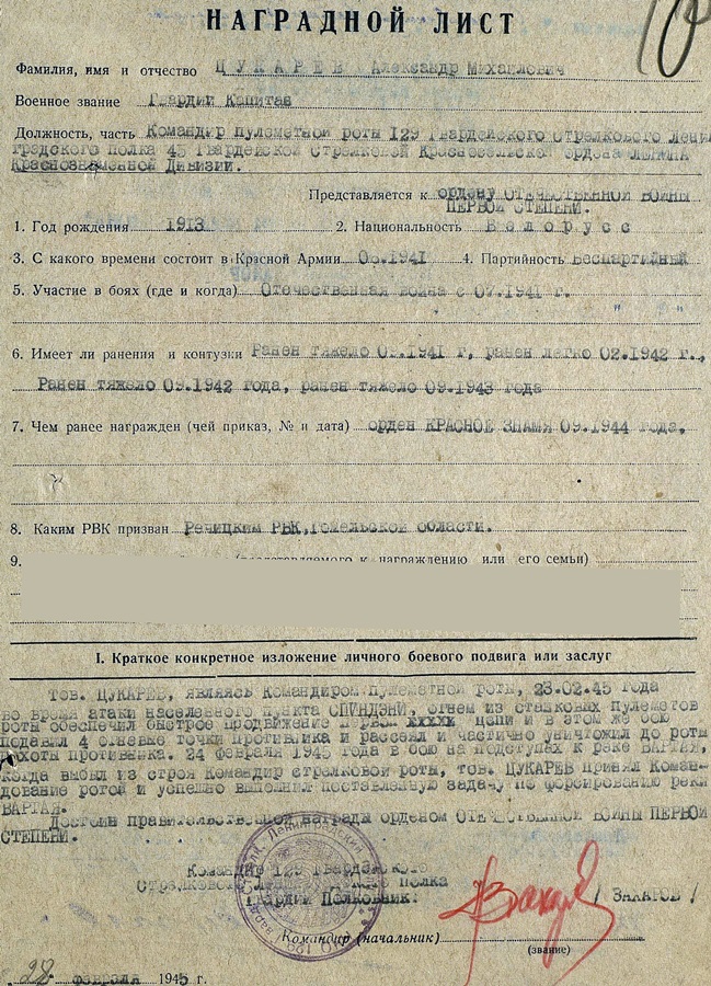Netist üles korjatud pildid. Emajõe forsseerimise ja lahingute eest Tammistu küla juures Septembris 1944. sai vanemleitnant Tsukarev autasustatud vindiga Punalipu ordeniga. Kui sama mees hiljem aga Isamaasõja I klassi ordeni sai ( Spindeni... Läti ?? ), siis oli auastmeks juba kapten.