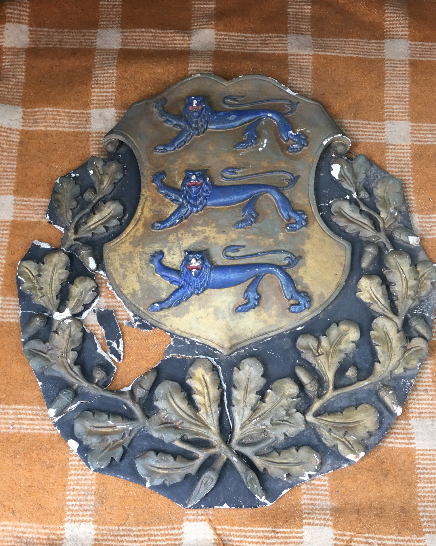 Siin restaureeritud vapp. Puudusid osaliselt tammelehed jmt. Aru igatahes ei saa, millised osad juurde tehtud.