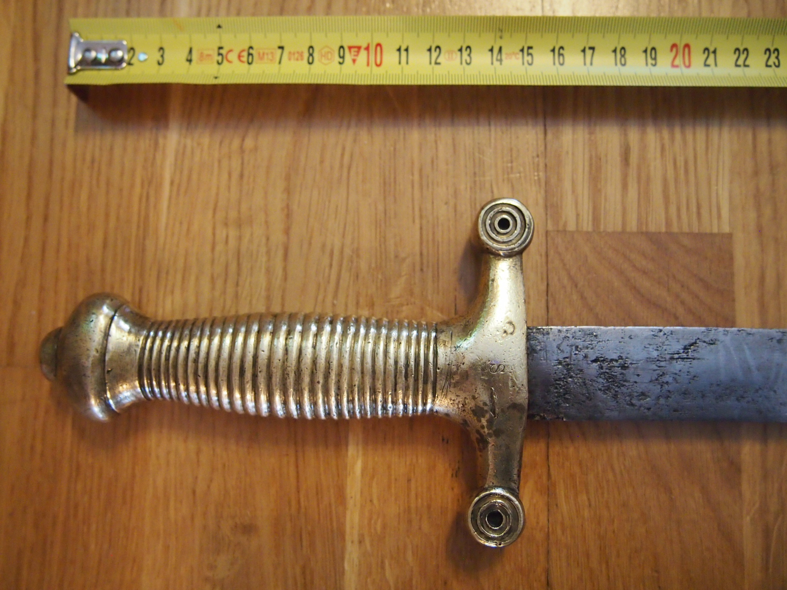 Külmrelvakatalooge ja inernetiotsinguid kasutades pole suutnud riista täpselt tuvastada. Vene 1848.a. mudel tessak on sama pikk, kuid laiema ja kahepoolse teraga, kuid see on vaid ühepoolse teraga. Kõige lähedasem võiks ehk olla Taani 1854.a. mudel, aga ka nagu päris mitte see. Ainsaks markeeringuks on käekaitsel "S".