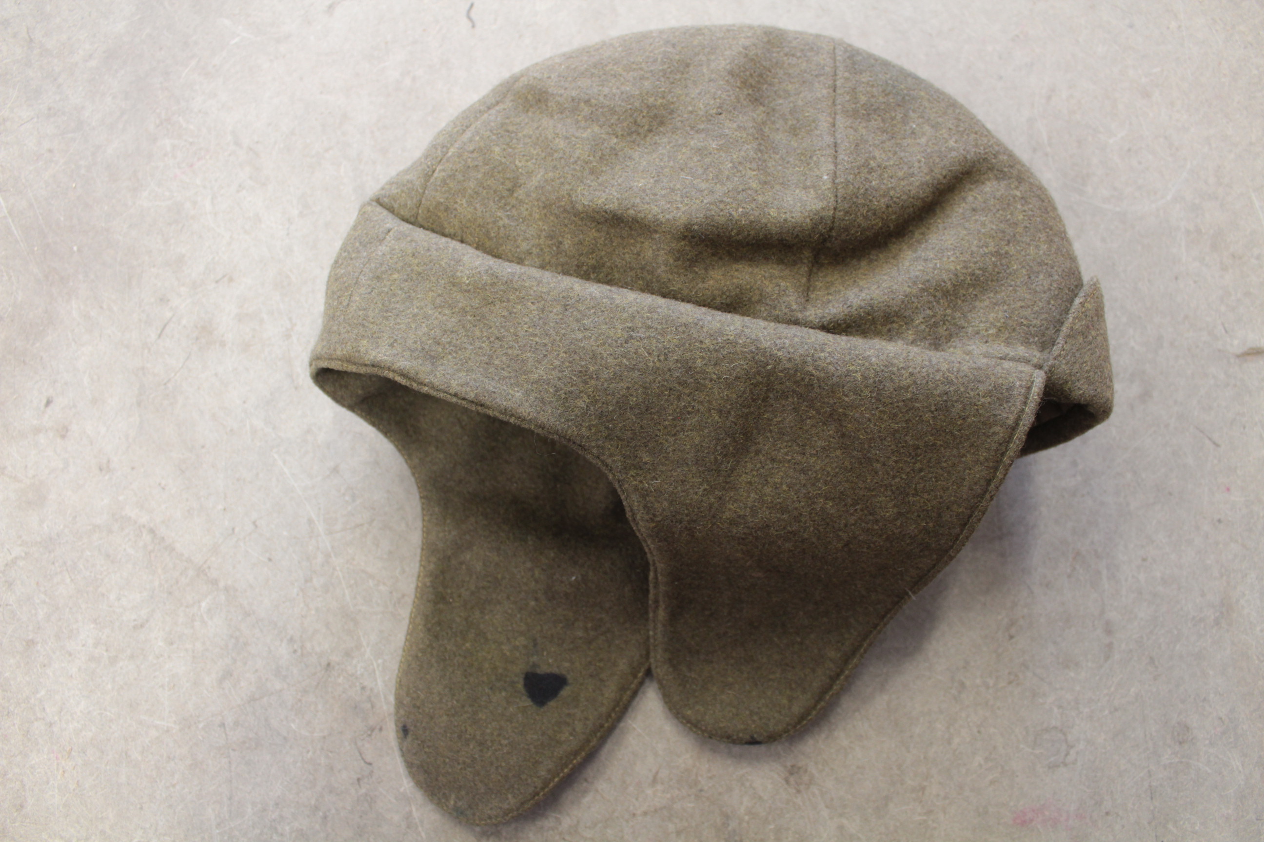 VS või 1920-ndate algusaastate talimüts. See mudel oli kasutusel juba VS ajal ja kanti veel mõned aastad pärast sõda nagu piltidelt paistab. Väheliikuvam väikese nokaga variant. Otsaees näha mütsimärgi klemmide auk. Ühel kõrval on tindiplekk. Manuses on ainus pilt mida olen näinud sellise tüüpi mütsiga. Müts pärineb Draamateatrist kuhu sattus nõukogude ajal kui Ajaloomuuseumi varusid anti sinna lõikuda.