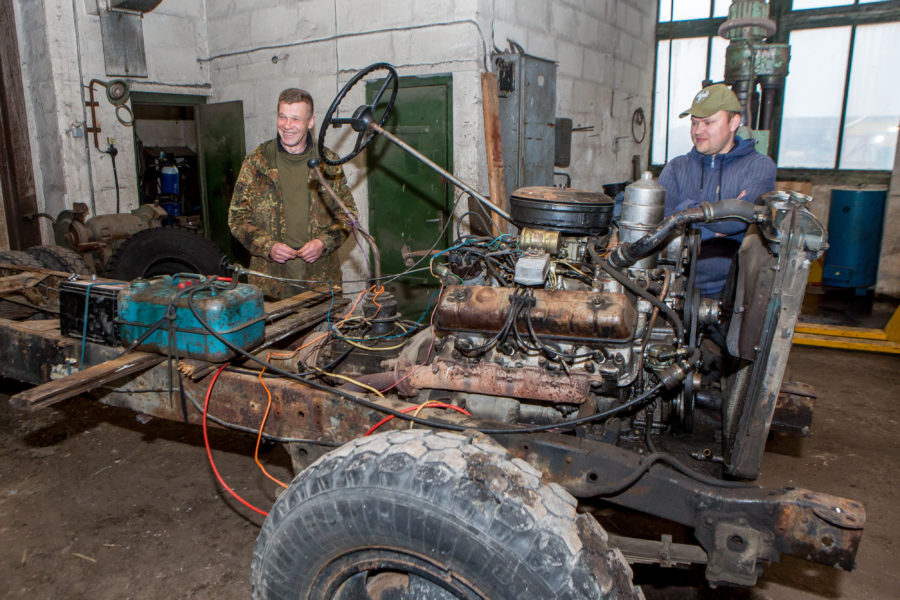 TULEVANE KALEVIPOEG: Soomusauto ehitatakse endise GAZ-53 raamile, sest selle pikkus on kõige sobivam. Fotol Margus Sinimets (vasakul) ja Virko Ardel.