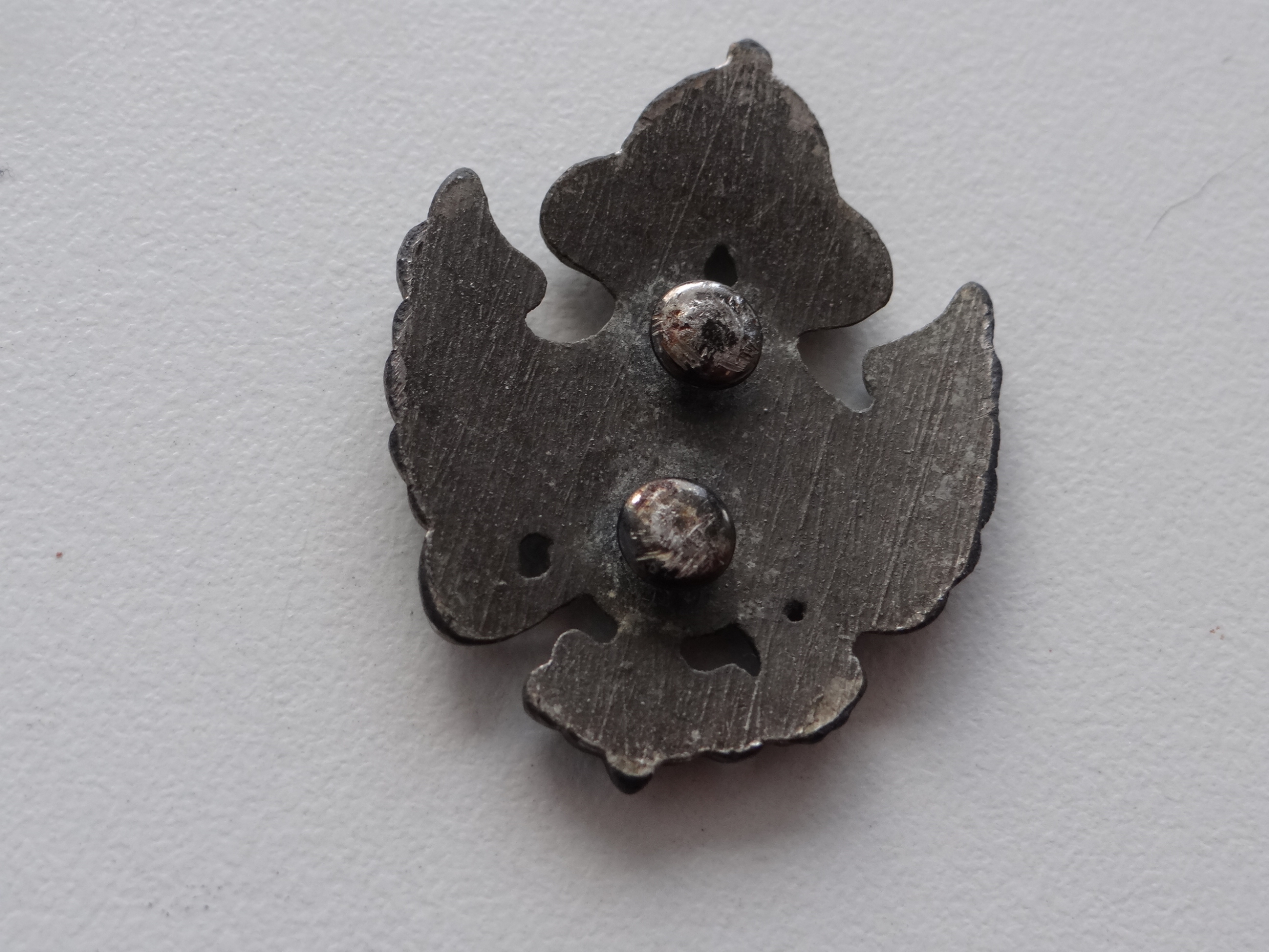 kas tegu tsaari aegse või nüüdisaegse jubinaga.linnu keskel imelik vapp.mis otstarbeks kasutati.kõrgus 4,5sm., laius 3 sm.