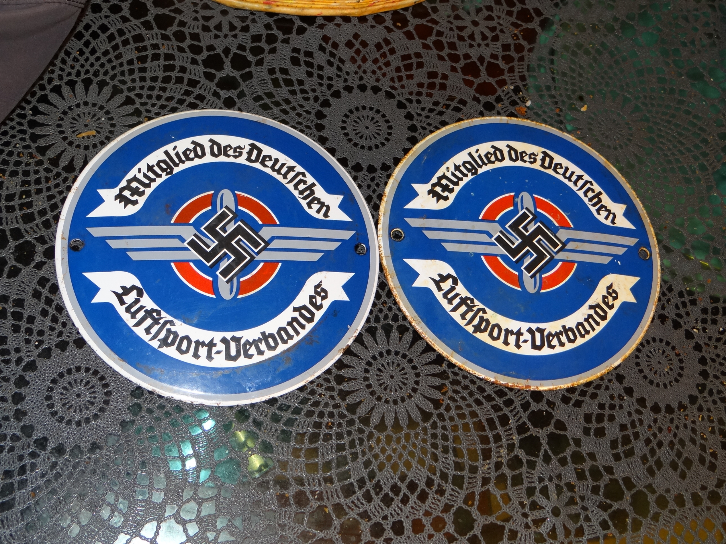 Deucses Luftsport Verbandes ehk DLV liikmed kasutasid neid plaate oma maja või korteri välisustel. War relics foorumist kirjutati nii. See on DLV-i liikmete jaoks ukseplaat, kes võiksid seda kinni panna oma maja või korteri uksele, kui nad seda soovivad. Paljudel Kolmanda Reichi organisatsioonidel olid sellised laigud oma liikmete jaoks.