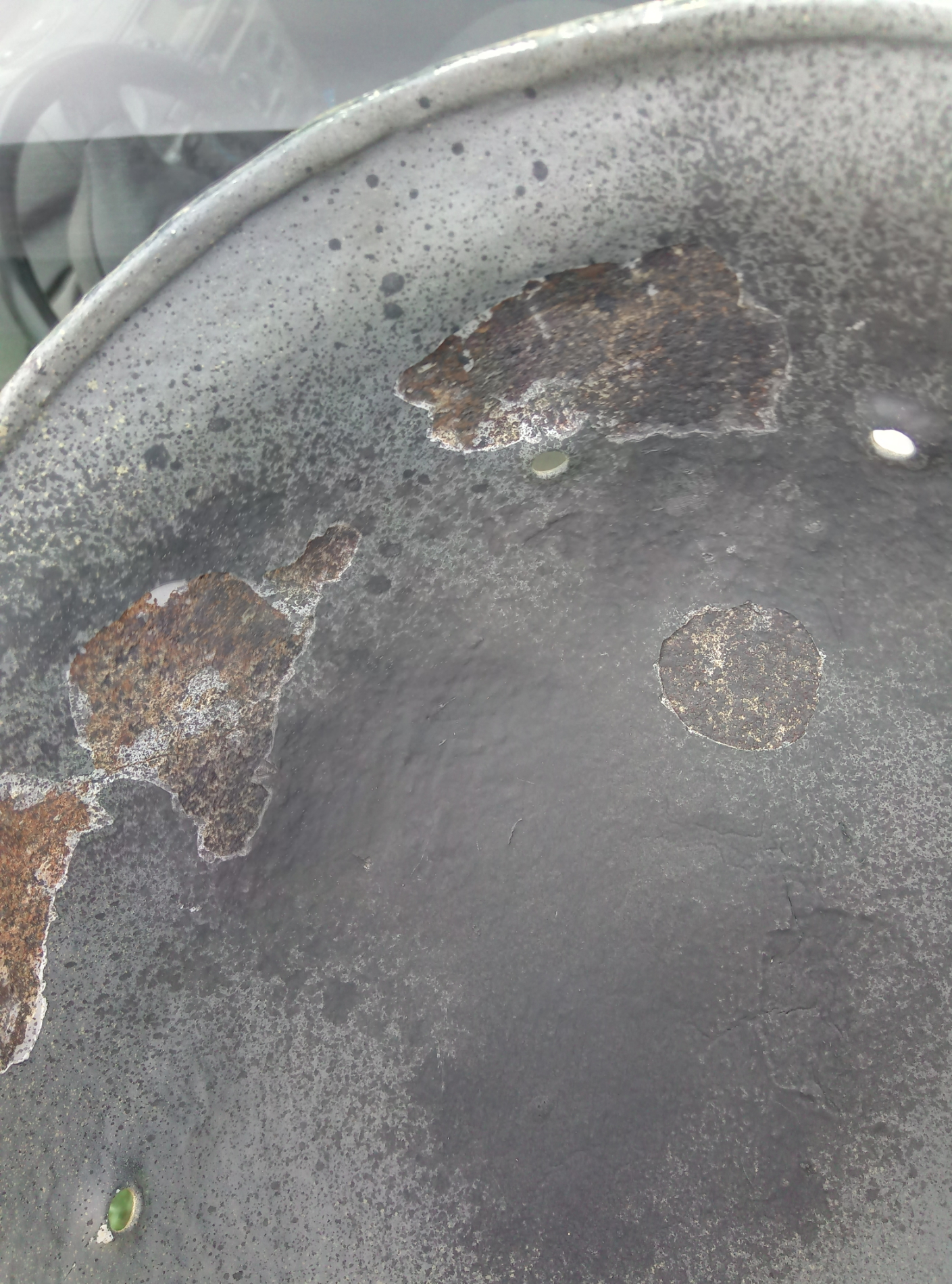 Mida arvavad targemad?? Seest kust uus värv on lahti koorunud paistab alt roostene kiiver. Väidetavalt ka Eestist välja tulnud.