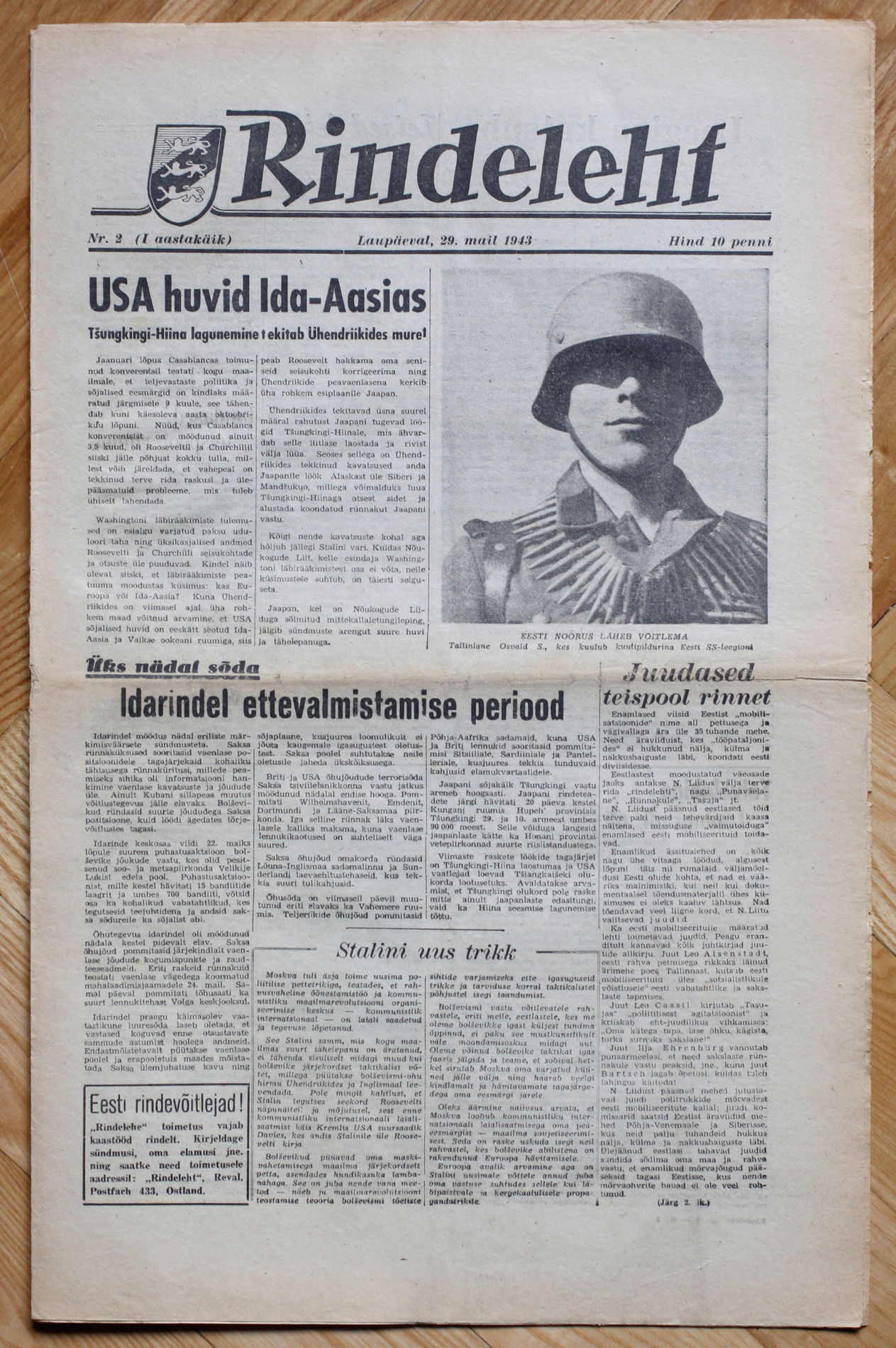 "Rindeleht" nr. 2, 29.05.1943 - 36. Politseipataljon, Kaitsepataljon, Raudrist