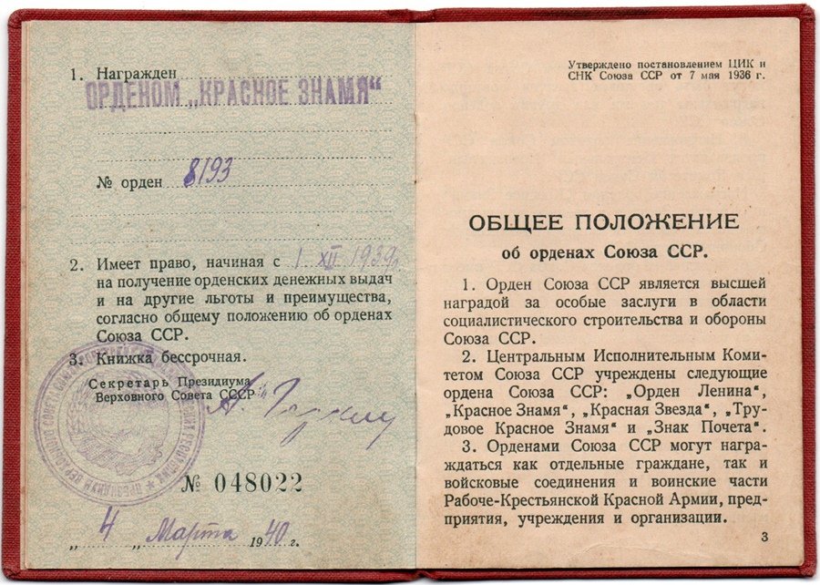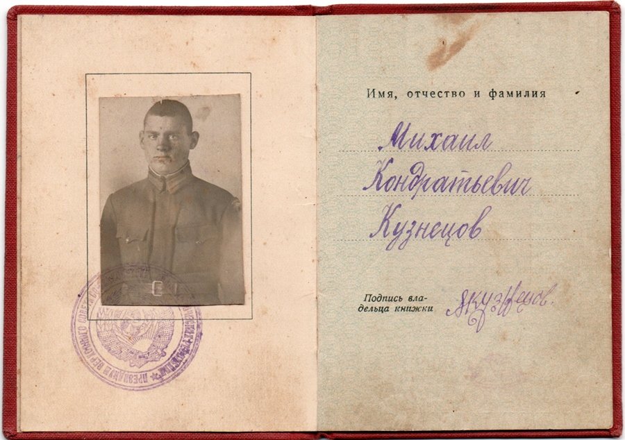 Paar aastat tagasi tuli Punalipu orden nr. 8193, nüüd leiti ka dokument juurde. Kuznetsovi autasustati piltidel näha oleva ordeniga 1939. aastal Mongoolia ja Mandžuuria piiril Halhõn goli lahingus üles näidatud vapruse eest.