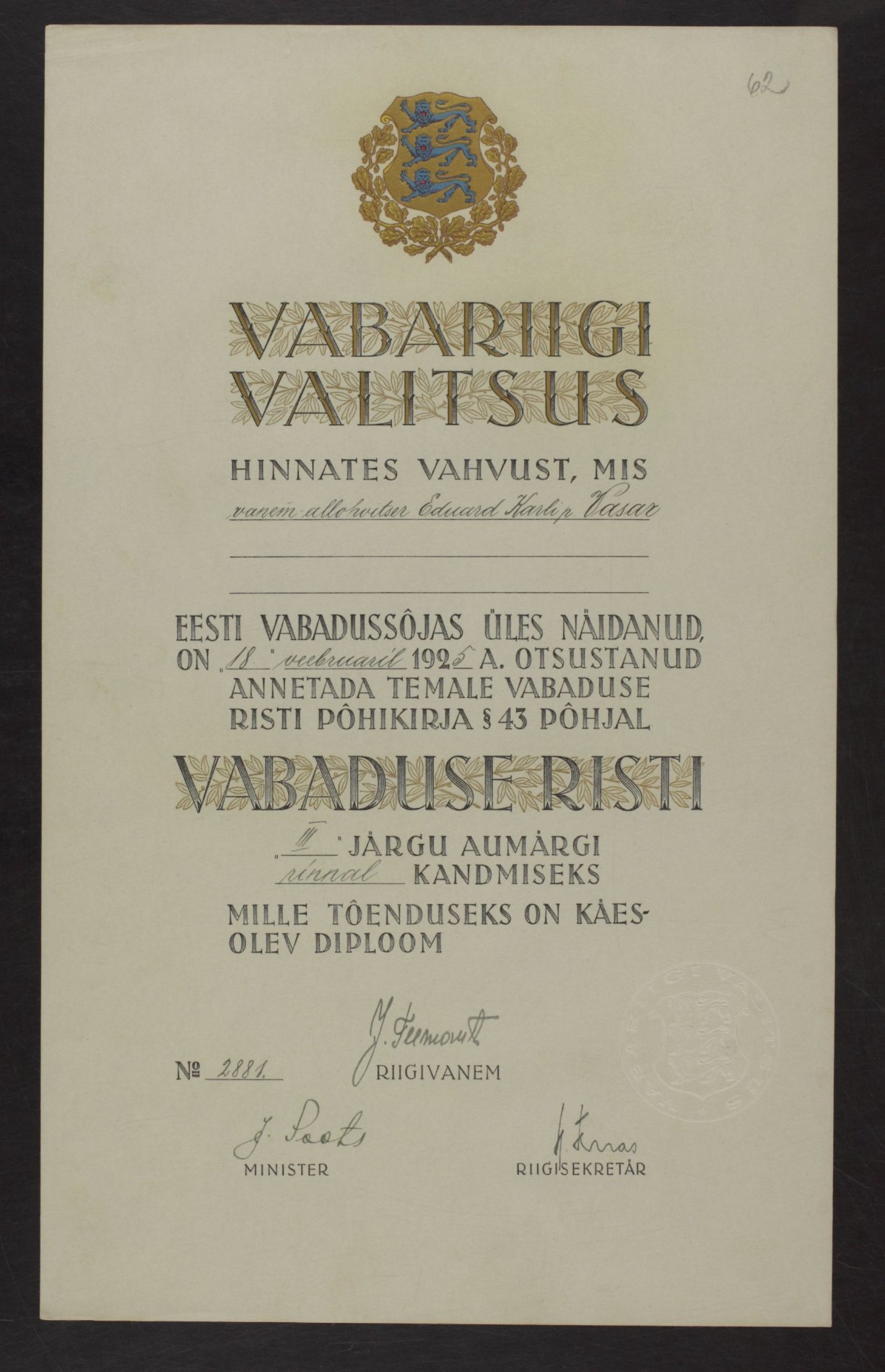 Vabadusristi tunnistused ...