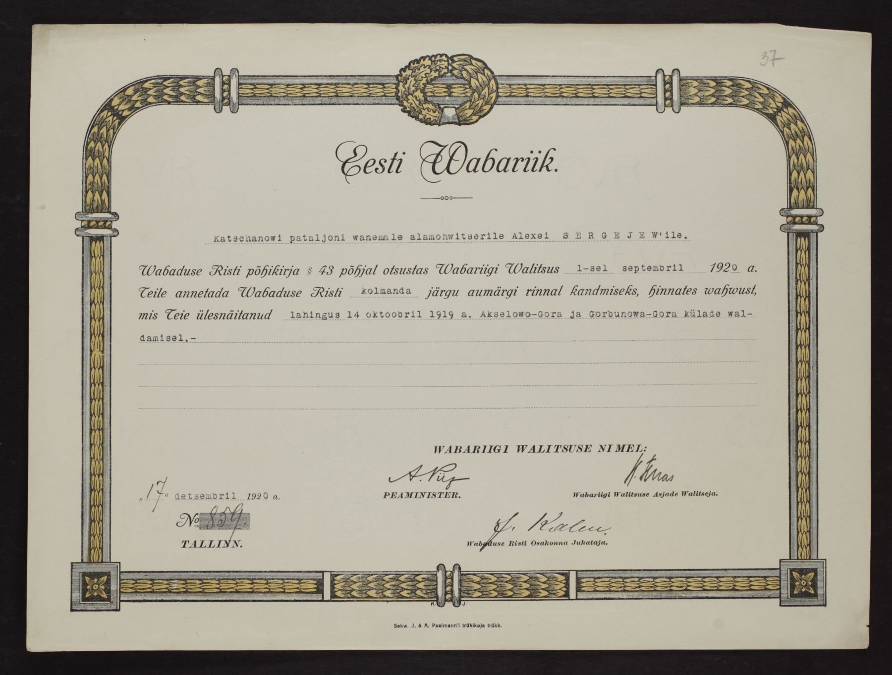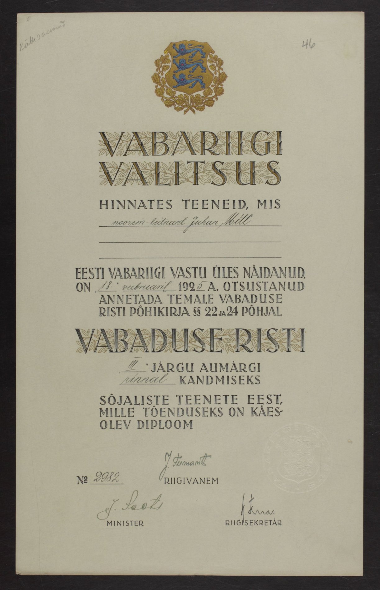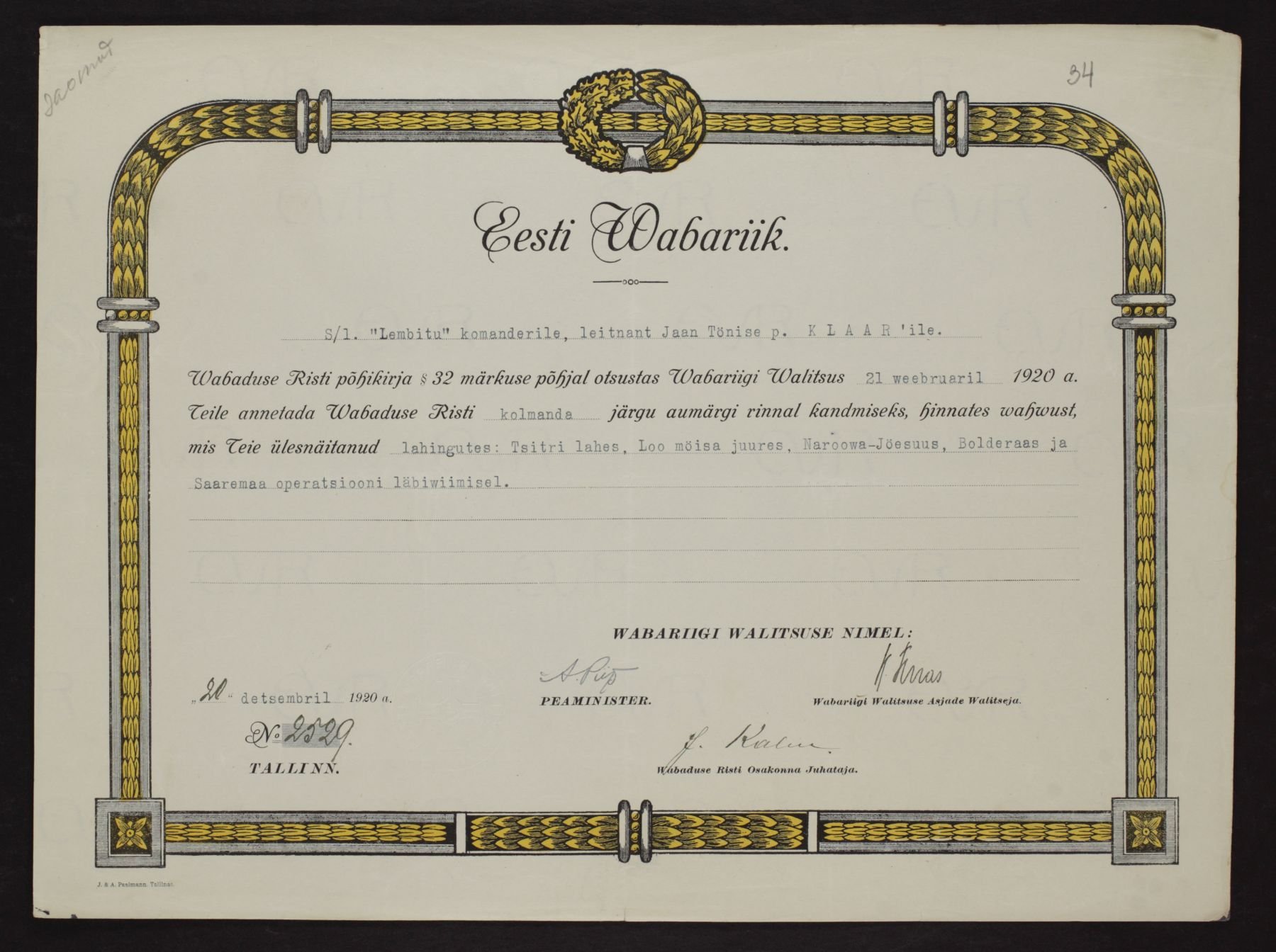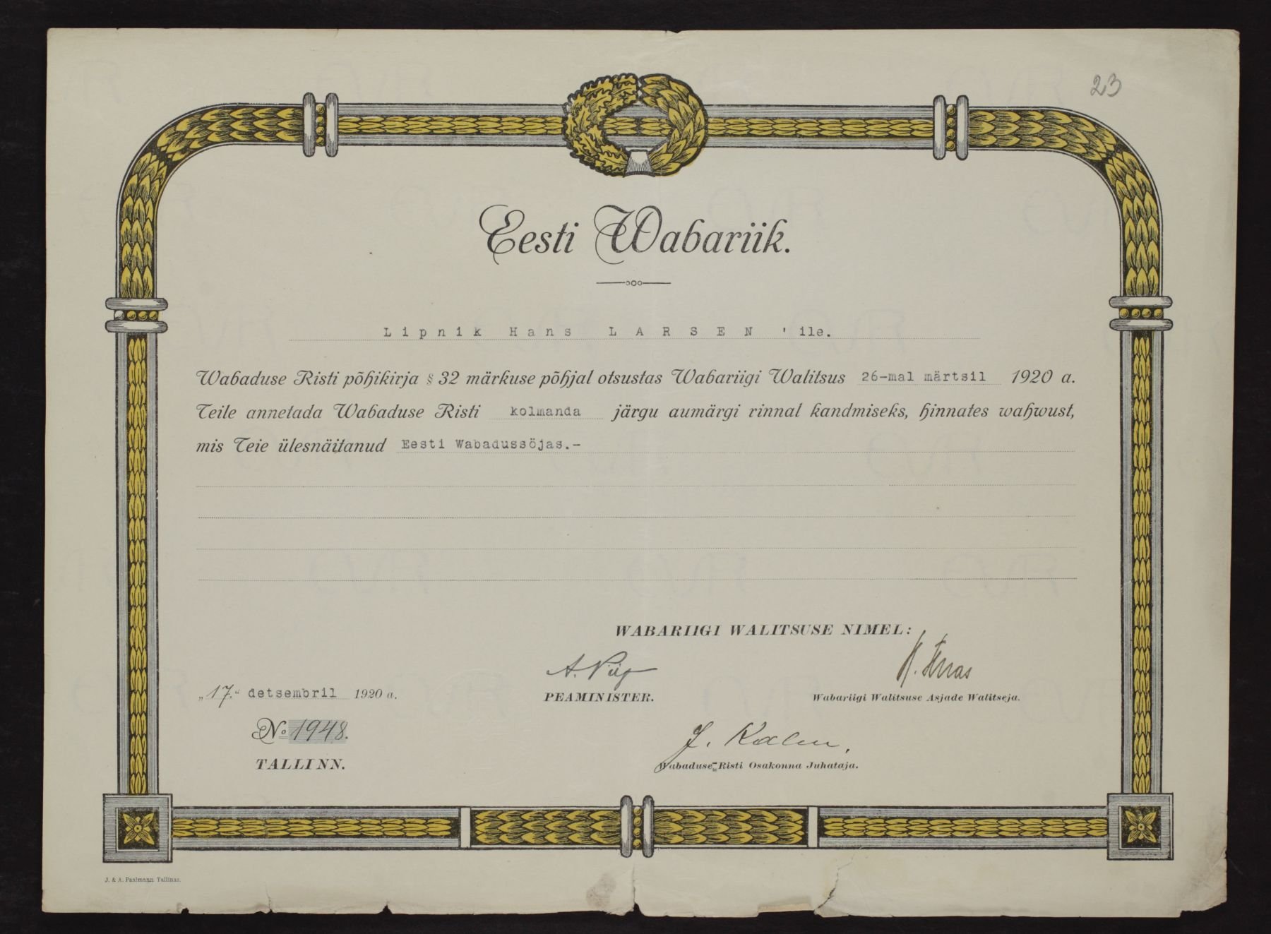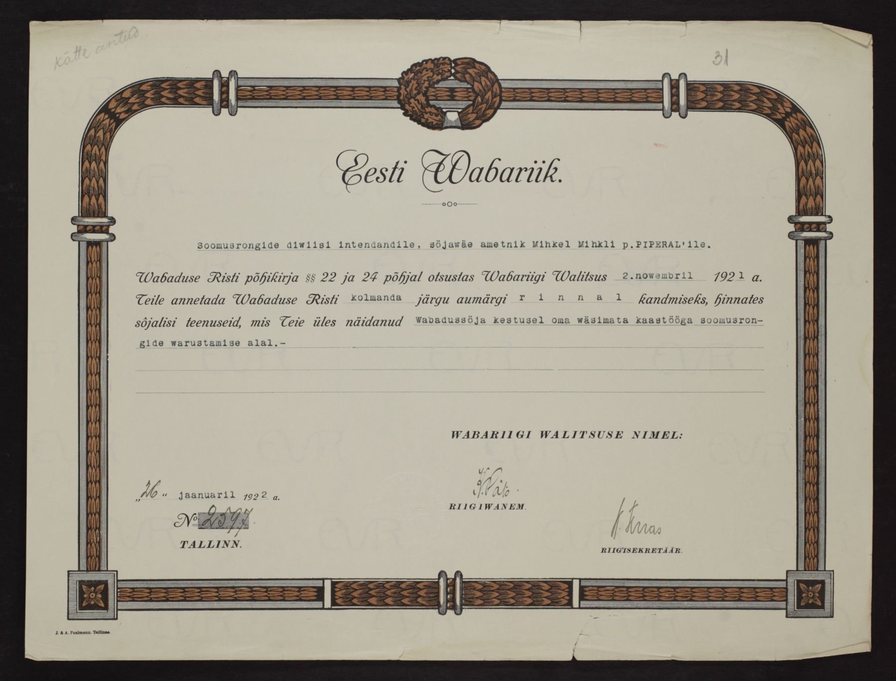 Re: Vabadusristi tunnistused ...