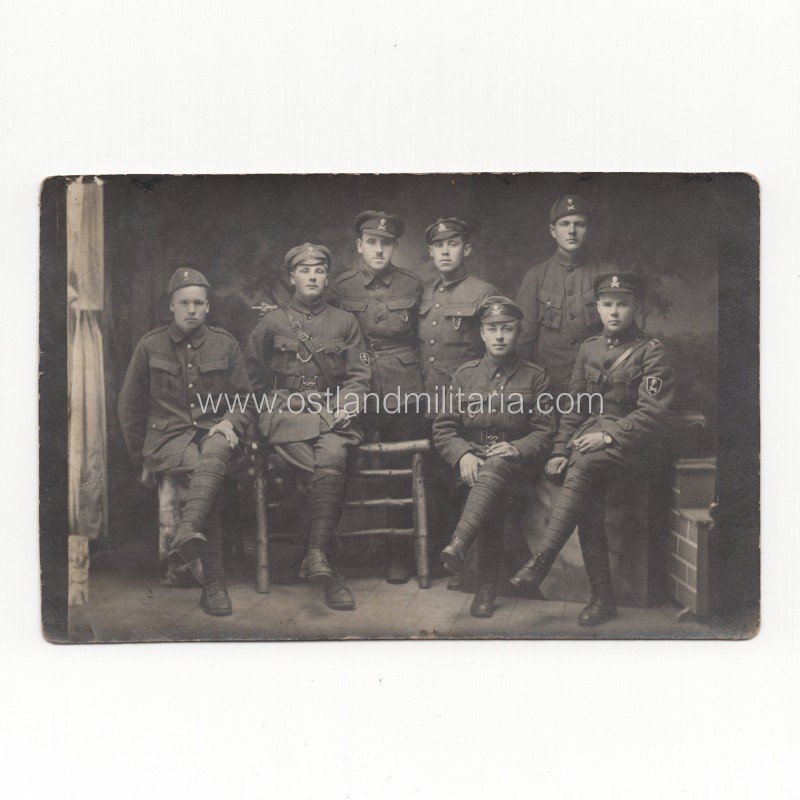 Group photo of soldiers of the Kuperjanov Infantry Battalion. The insignia (skulls) of the battalion are perfectly visible on the sleeves of the soldiers' uniforms. The size of the picture is about 13.7 and 8.7 cm