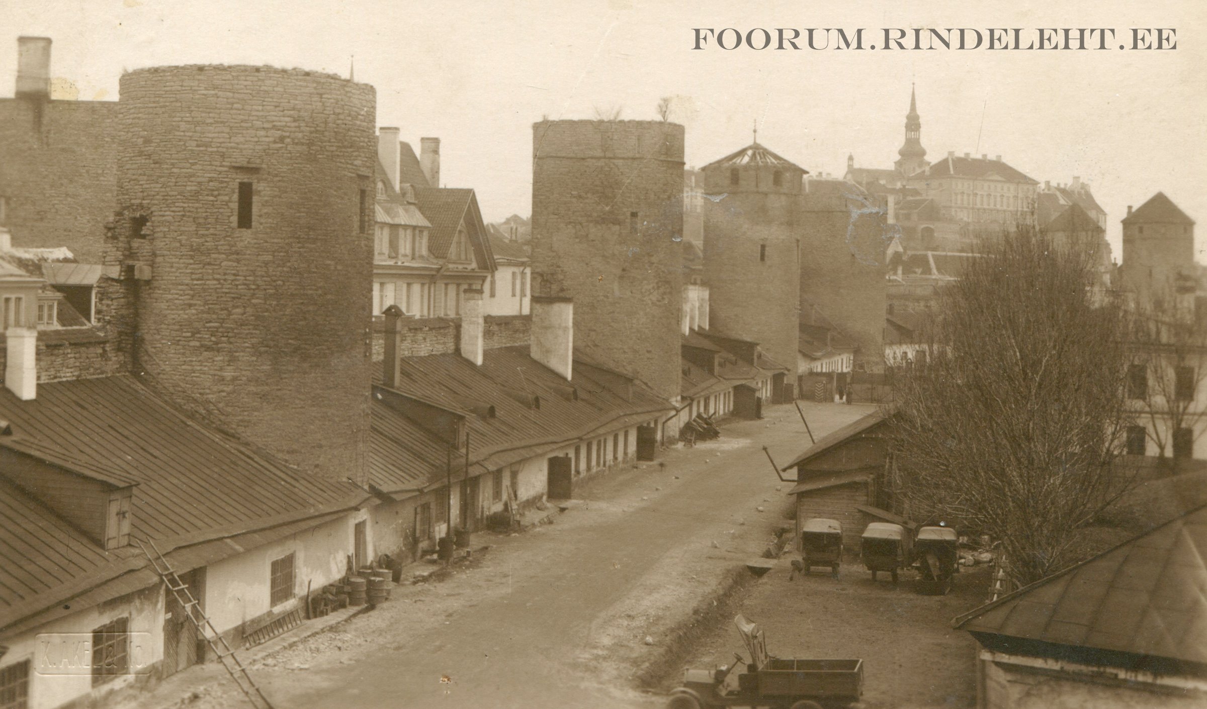 Linnamüüri tornidest on näha Grusbeke-tagune torn, Eppingi torn, Plate torn ja Köismäe torn (jääb teisele poole Suurtüki tänavat ja ATR territooriumilt välja). Teisel ülesvõttel on Plate tornile hakatud katust peale ehitama.