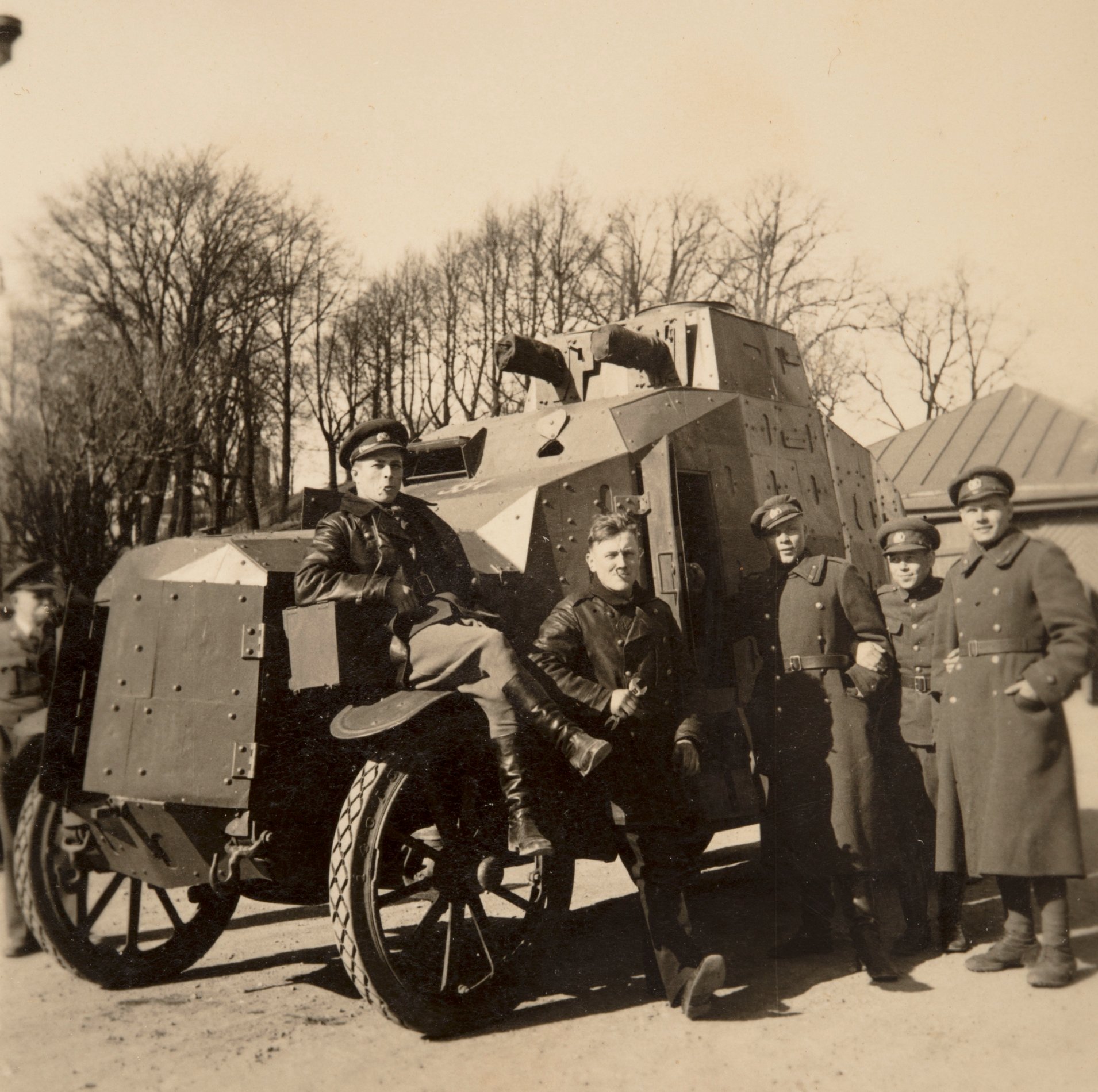 1940/41 talvel tehtud ülesvõttel on ilma relvadeta Arsenal Crossley soomusautod nr 150, 142, 143 ja 144 ning soomusautode taga on reas Inglise päritolu Mark V rasketankid Waldaja, Päälik, Uku ja Wahtula.