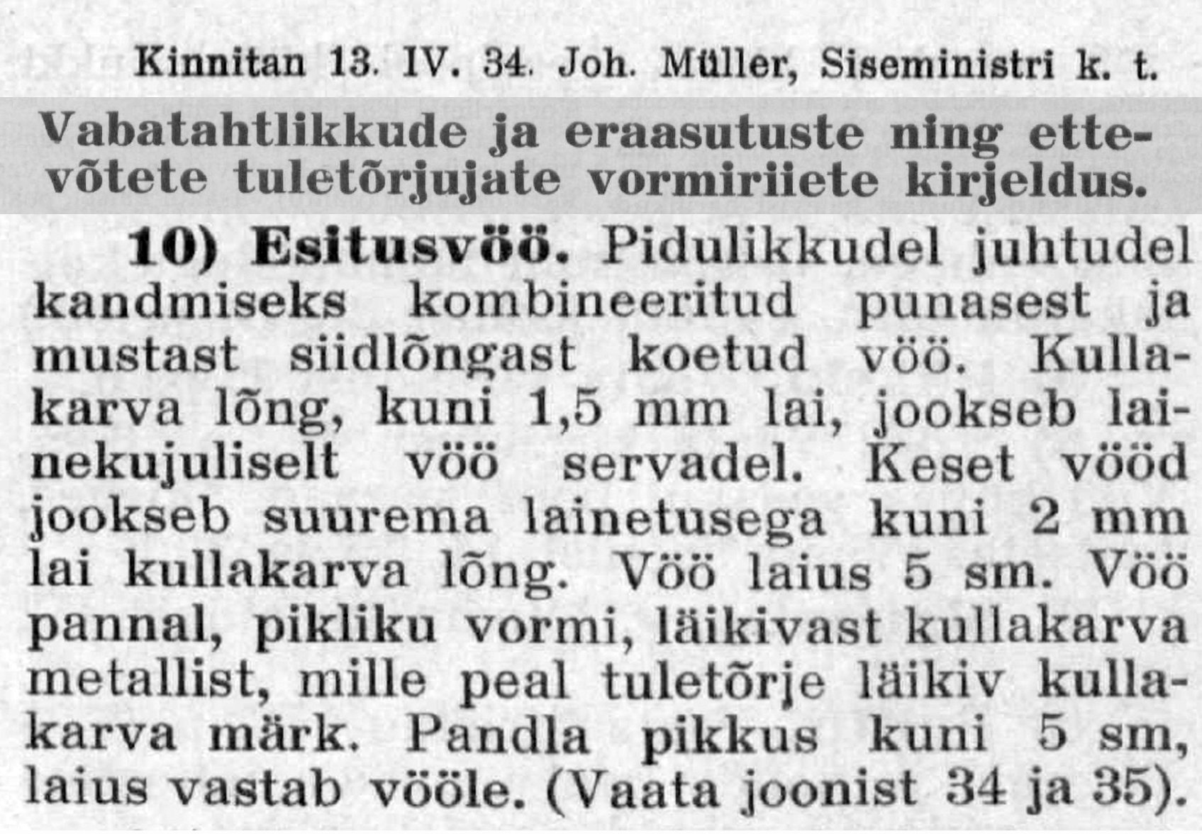 Tore, tänan! Tähendab 1934-1938 perioodil kasutusel olnud pannal / vöörihm. Kas oli ka enne seda 1934. aastal kinnitatud ovaalse kujuga pannalt tuletõrjel mingi esitusvöö?