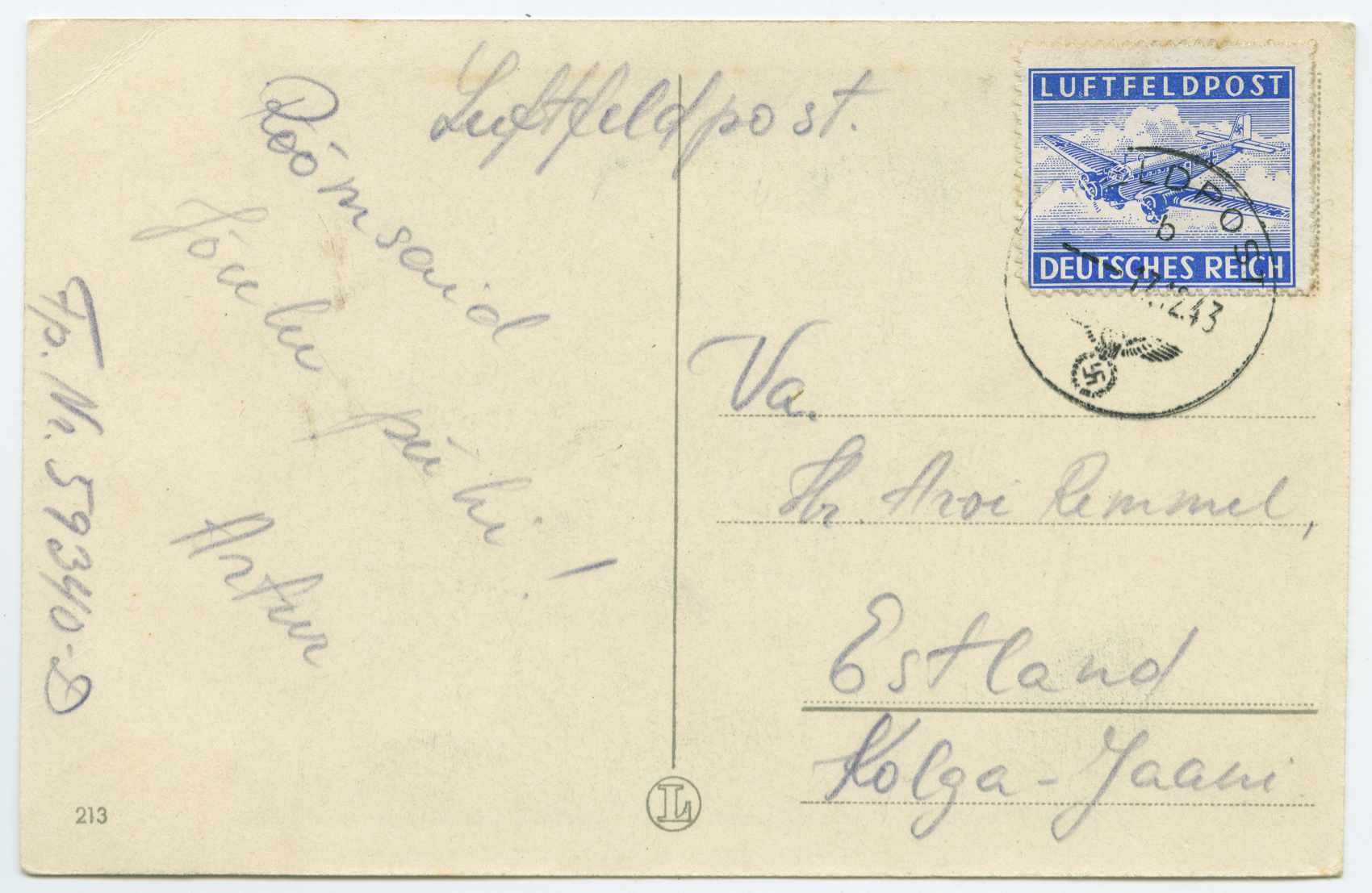 Välipostinumber 59340 D võiks nagu olla "Stab u. Kriegsberichter-Zug 3. SS-Brigade" ehk siis Sõjakirjasaatjate rühm. Samas see "D"-täht välipostinumbris -- teab keegi, kuidas see sõjakirjasaatjate rühm oli organiseeritud, see D nagu viitaks, et oli veel omaette grupeeritud (rügemendid?)? "A" siis ilmselt staap.