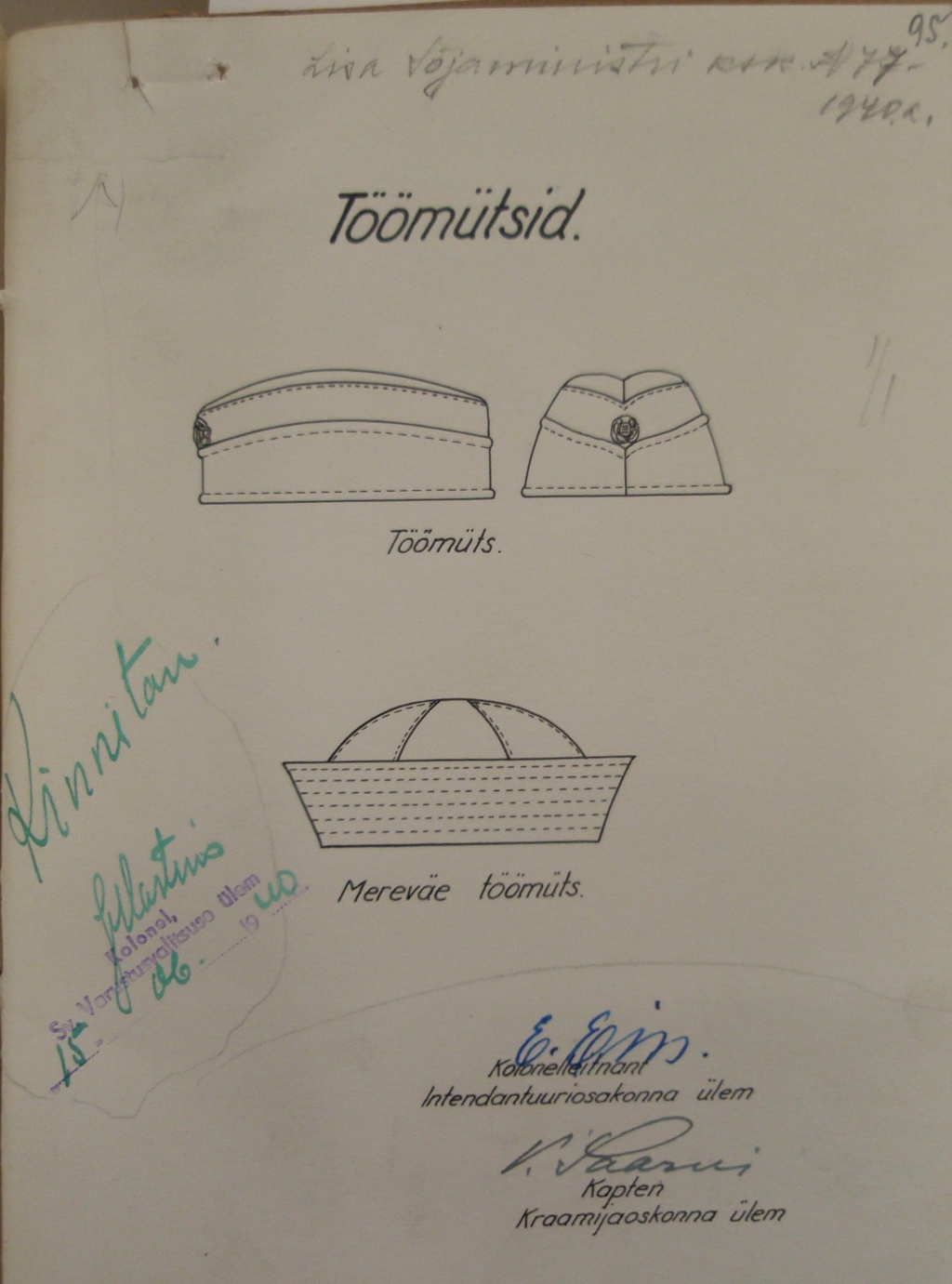 NB! Kusjuures mereväele olid ette nähtud nn. laevukese kujulised mütsid. Aga neid pole ajastu fotodel näinud.
