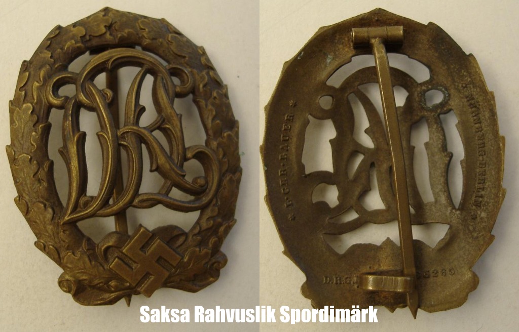 Tsiteerin : " Spordimärk,just nagu näidatud lhk.34 (must-valge foto) oli kullakarva.