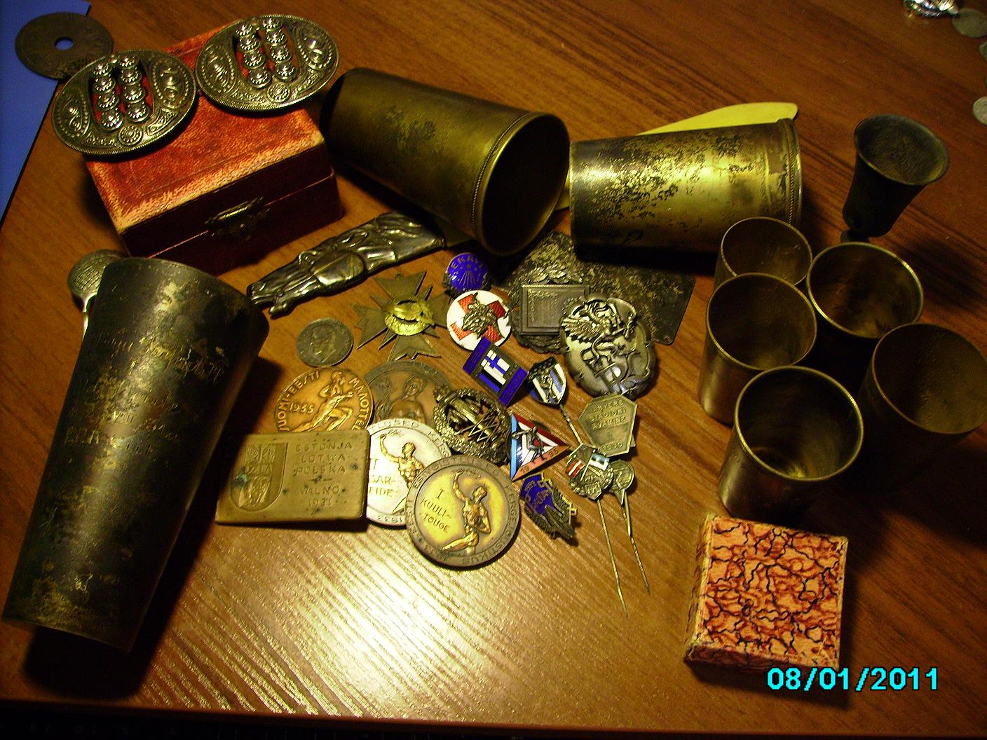 3-kordse Eesti meistri kergejõustikus, politseikonstaabel J. Suuki autasud. Eriti rõõmustab Riigivanema politsei spordimeistrite auraamatu rinnamärk.