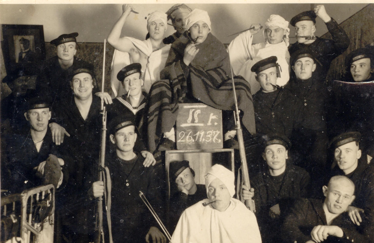 Mereväe Õppekompanii. Piibuga sell teki ja turbaniga tüübist paremal on minu vanaisa