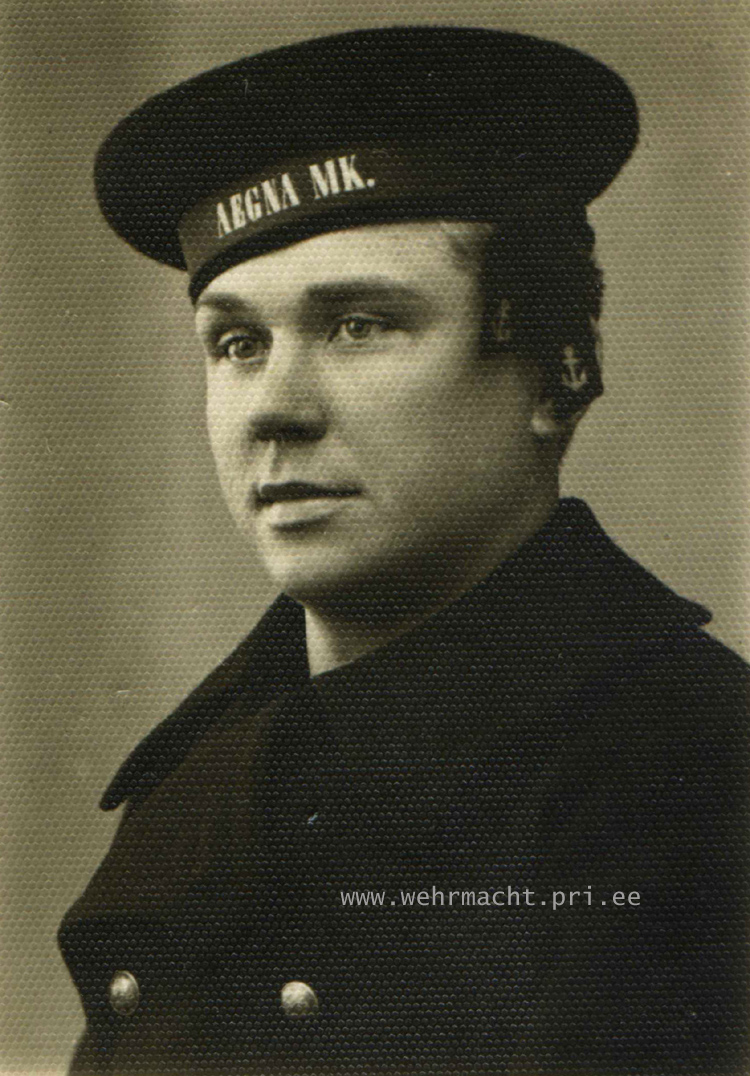 Aegna Merekindluse "AEGNA MK." mütslint, foto tehtud 1940. aasta jaanuaris ja pildil komendor Voldemar Veiler.