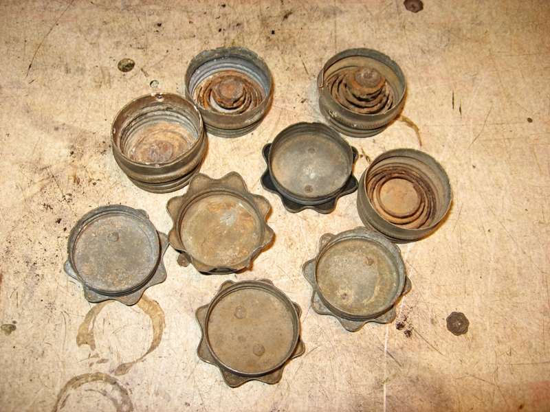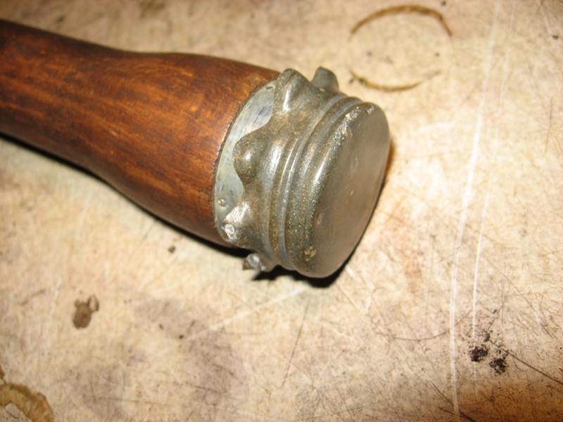 http://www.militaria-archiv.com/showthread.php?t=138912also mit den Kappen das war so: Bei der ersten deutschen Stielhandgranate 1915 war der Stiel unten kugelförmig abgedreht und die Abreißschnur guckte einfach unten raus. diese Schlaufe wurde an den Stil gelegt und mit einem "Klebepapier" gesichert. Beim Sturmangriff, im engen Graben oder beim Robben konnte man dennoch irgendwo hängen bleiben. Das war äußerst schlecht für die Gesundheit, deshalb ging man noch im selben Jahr dazu über, den Stiel unten eckig zu machen und setzte eine Kappe aus gewachster Pappe auf, die die Abzugsschnur mitsamt der inzwischen angebrachten Porzellanperle schützte. Dummerweise war es im Schützengraben nicht immer ganz trocken und die Kappe konnte sich auflösen. eine Abreißschnur mit baumelnder Perle daran war natürlich noch gesundheitsschädlicher, als eine normale Schnur und deshalb wurde 1916 ein Gewinde auf den Stiel gesetzt, auf das eine ziemlich flache Metallkappe geschraubt wurde. Dummerweise ließ diese Kappe sich mit schlammigen Händen (was im Grabenkampf nicht ungewöhnlich war), äußerst schlecht abschrauben und eine Abreißschnur, an die man nicht herankam, war unter Umständen genauso schädlich, wie eine, die immer in der Gegend rumbaumelte. Deshalb kam man auf die Idee. an die Metallkappe einen geprägten "Stern" zu nieten, der endlich eine gute Handhabung ermöglichte. Gegen Ende des Jahres 1917 wurde der Herstellungsaufwand für diese Art von Kappen für zu groß befunden und es wurden nun höhere Kappen hergestellt, die am oberen Ende sternförmig aufgebogen wurden. damit sparte man sich die Herstellung und das annieten der Sterne. Offenbar hat sich diese neue Kappe nicht besonders bewährt, denn bis Kriegsende und darüber hinaus wurden auch die alten Kappen weiterverwendet. Sie erlebten im zweiten Weltkrieg eine Renaissance, indem alte, noch vorhandene Bestände für die Stielhandgranate 24 benutzt wurden. Weil diese Kappen wesentlich griffiger waren, als die normalen, wurden sie als Winterkappen bezeichnet (man konnte ja nicht einfach sagen: Wir haben nichts anderes mehr). Alle Metallkappen gab es anfangs aus Eisen. Weil aber auch das anderswo dringender gebraucht wurde, nahm man später jenes Ersatzmetall, das in der wunderbaren Lage ist, 90 Jahre im Drech nahezu unbeschädigt zu überstehen.