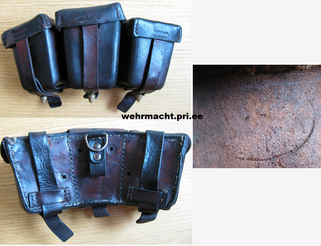 Siin Saksa päritolu padrunitasku, mis ilmselt oli kasutusel Kaitseliidus. Tasku sees ovaalne markeering, millest enam aru ei saa...